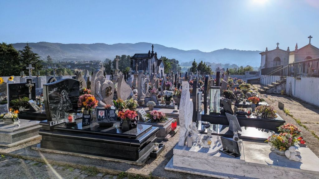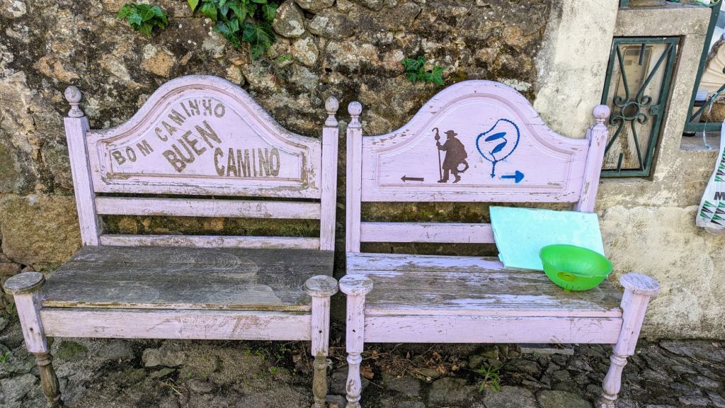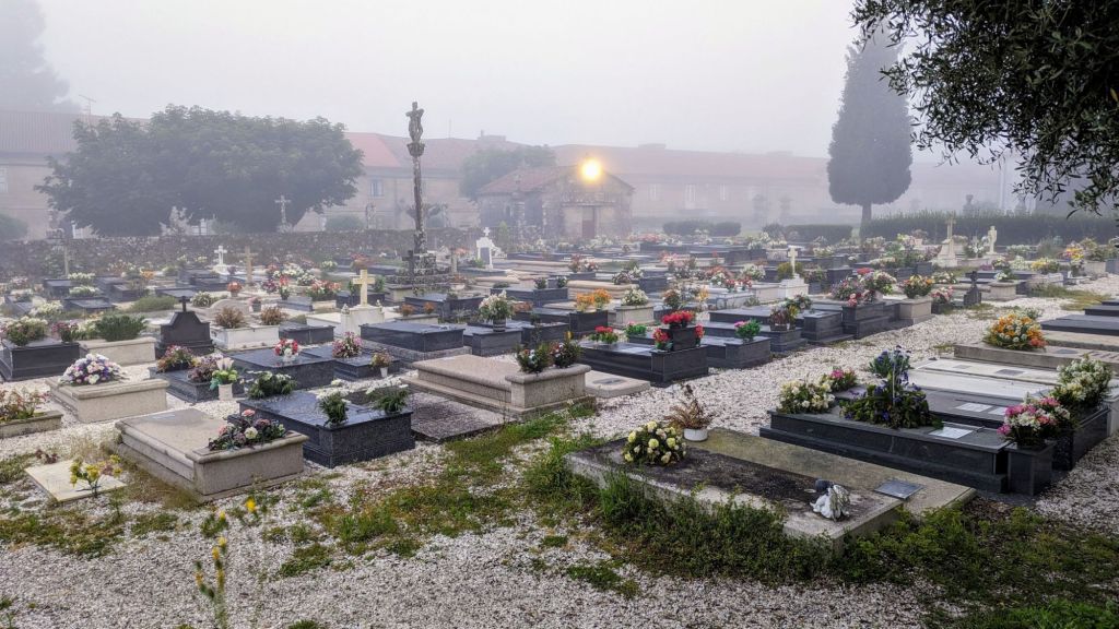 Il est 10h et je m’arrête pour prendre un café. C’est plein! Alors je demande à un Portugais seul à sa table si je peux m’asseoir avec lui. Il m’invite cordialement et nous discutons, notamment du pèlerinage à Compostelle qu’il a déjà fait. Quand il se lève pour partir il me dit : « rappelle-toi que tout le monde va à Santiago, soit tu y vas quand tu es vivant, sinon tu iras quand tu seras mort, parce que tout le monde y va » conclut-il.
