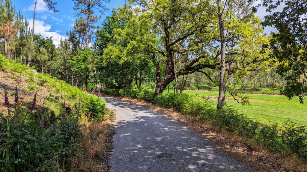 Aujourd’hui encore je traverse des paysages magnifiques. C’est d’une grande beauté et en plus, tout ça sous un ciel bleu avec du soleil. Je dois dire que le Camino Português, depuis Porto, est très beau.