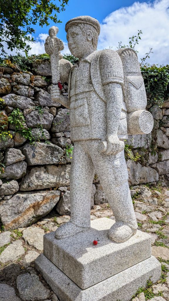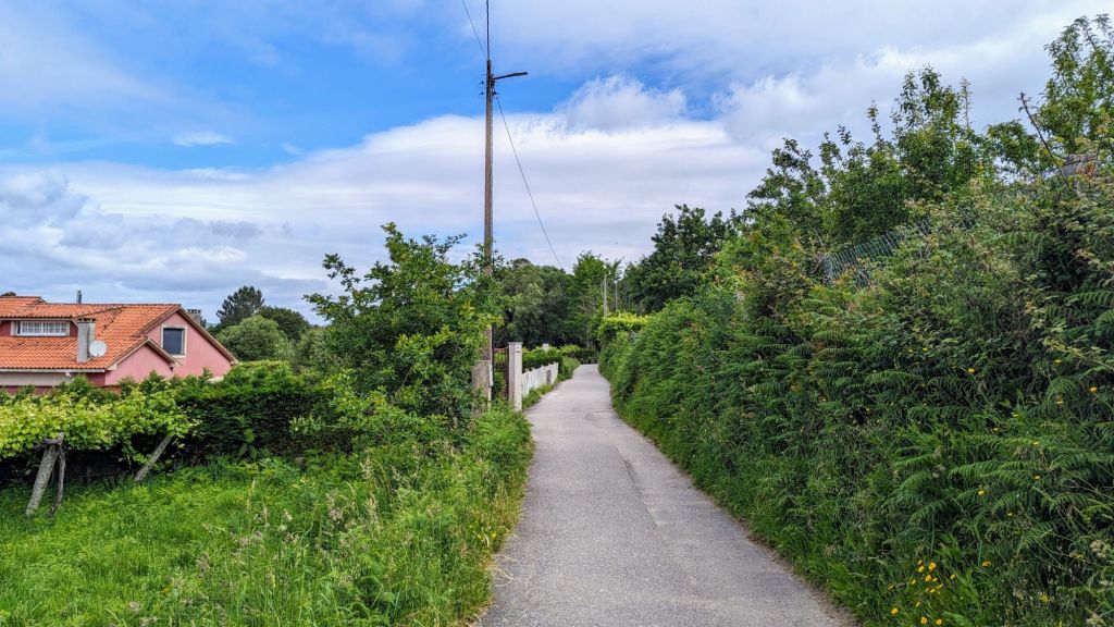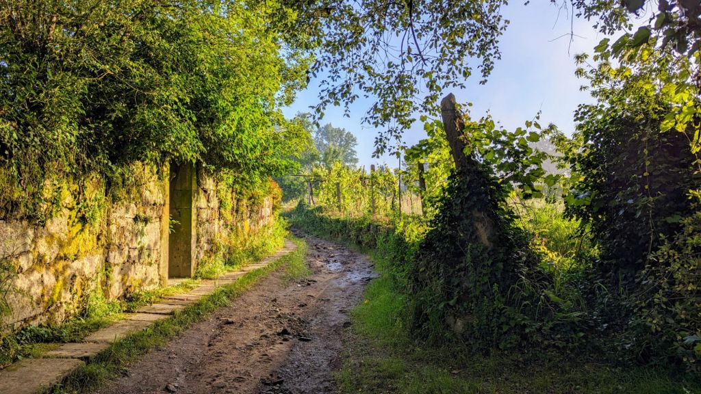 Je remonte un autre pèlerin, mais de la manière dont il répond à mon buen Camino, murmurant dans sa barbe en regardant par terre, je sens qu’il n’a pas envie de discuter. Je me fais la réflexion que le contact était beaucoup plus facile dans les premières parties avant Porto. Peut-être parce qu’on était moins nombreux, souvent solitaires pour de longs moments, et probablement plus réceptifs à la rencontre et à l’échange. Il y a aussi le fait que nous sommes dans les cent derniers kilomètres, le minimum à faire pour obtenir la Compostella, certains ne viennent que pour cela.