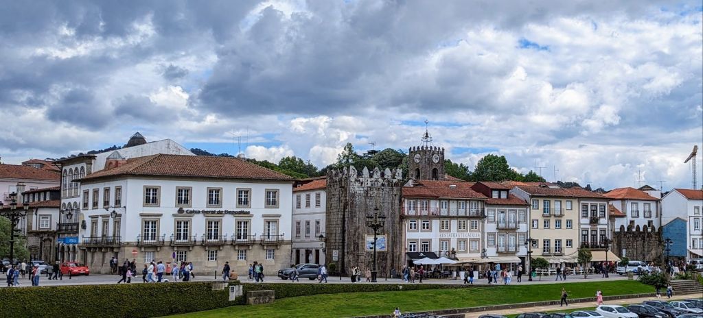 Quand je sonne au donativo à 14h, une très gentille hôtesse m’ouvre la porte et me confirme qu’il y a un lit de disponible. Elle s’appelle Bernadette, elle est de Lucerne, elle a mon âge. Elle parle le Suisse Allemand et baragouine un peu d’Italien, pas vraiment d’Anglais, pas de Français, pas de Portugais ! Comment elle s’en sort? je ne sais pas, mais elle est très souriante et très enthousiaste. Elle me fait même ressortir quelques paroles en Allemand qui étaient enfouies au fin fond de ma mémoire. Comme je suis Suisse et que je n’ai pas de sac de couchage elle me donne deux couvertures. Je mets 10€ dans la boîte des dons. Et là surprise ! Renato et ses deux compagnons sont aussi ici. Après la douche je vais faire un tour en ville et ça en vaut la peine, c’est très beau Barcelos, cité créative de l’UNESCO.