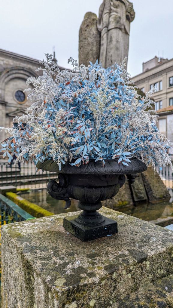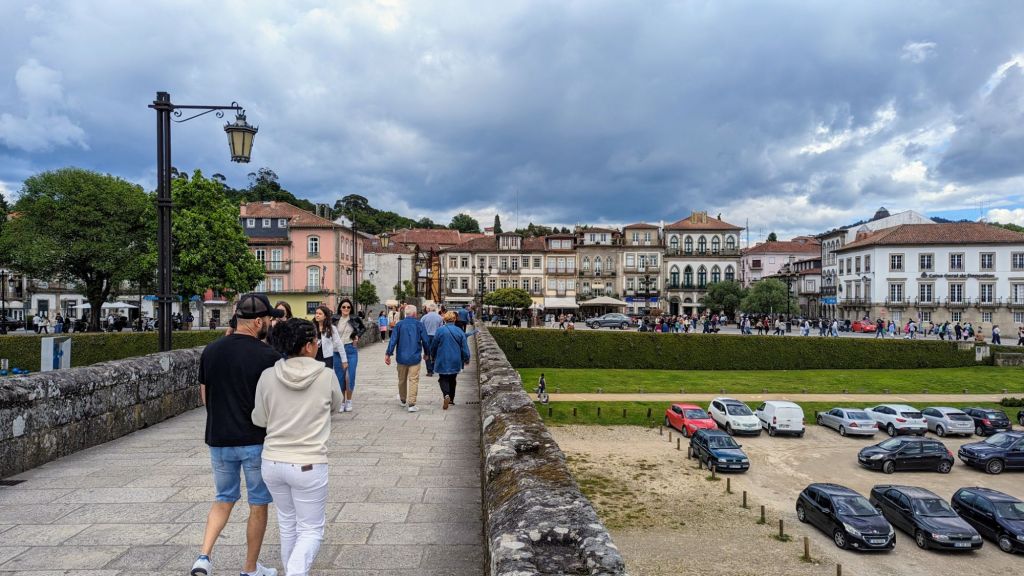 Finalement, j’arrive à Ponte de Lima, il y a ambiance festive, de gens sont en costumes traditionnels, il y a de la musique. Il fait moche par contre, gris, et il y a ce vent froid.