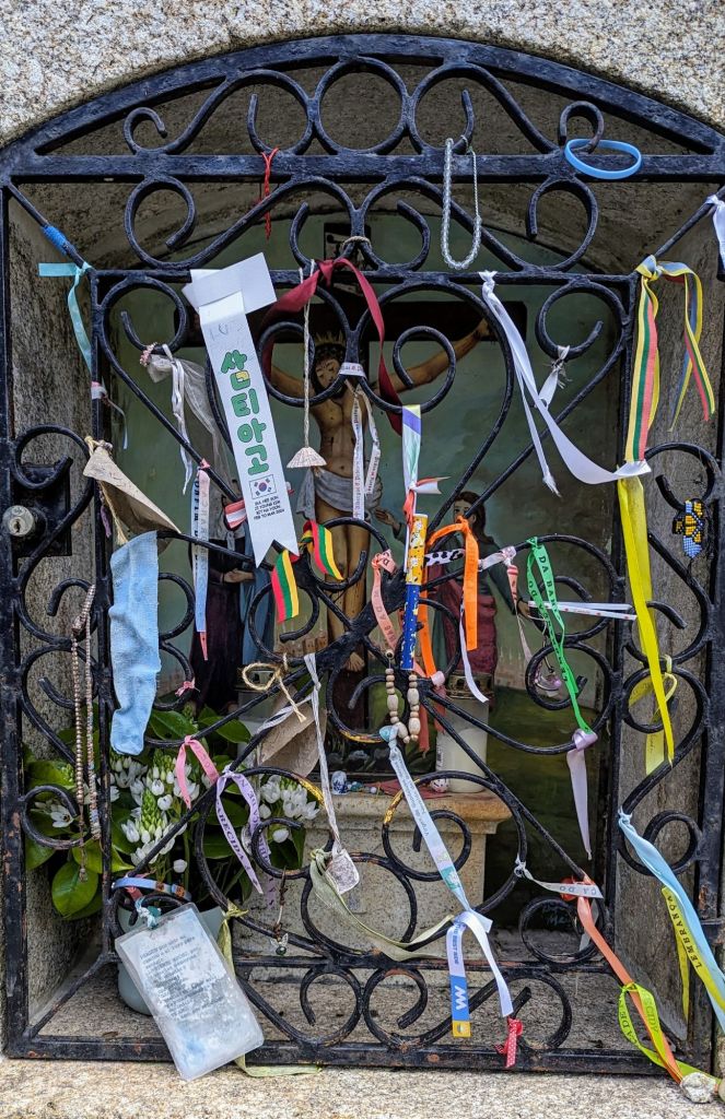 Hier soir en rentrant du repas, je retombe sur Renato que je croyais avec une étape d’avance. Dans la soirée j’ai aussi discuté avec Alvero et son frère, deux jeunes chiliens, ainsi qu’avec deux jeunes coréenes. Elles baragouinent l’anglais, alors nous avons dialogué avec l’aide de Google traduction. C’était une première pour moi, mais ça fonctionne.