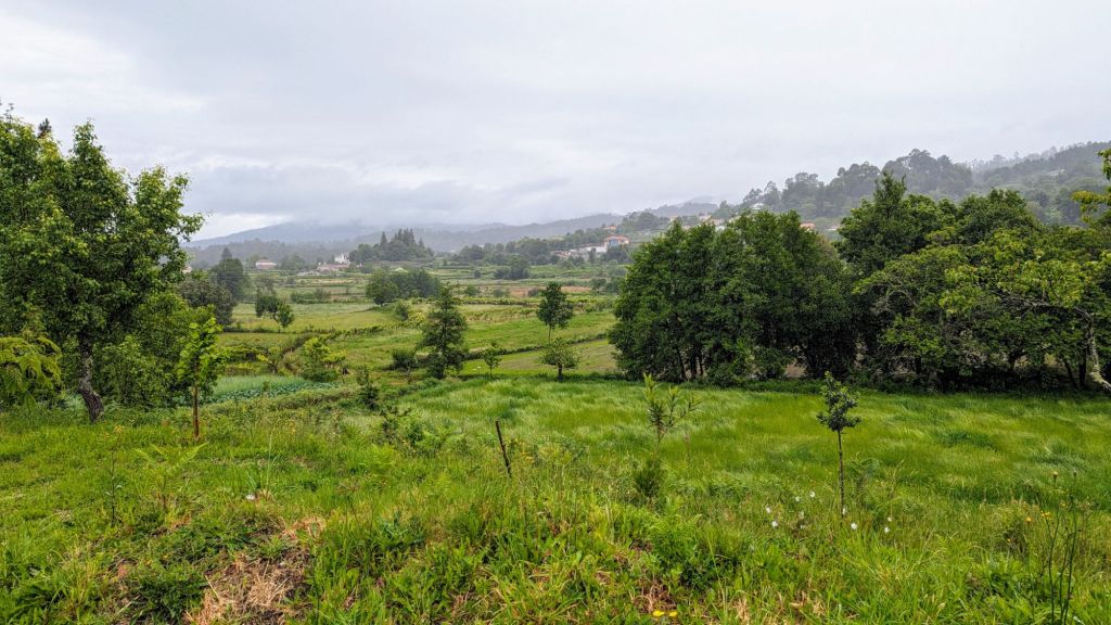 Je relève qu’aujourd’hui le Camino est absolument magnifique, avec de beaux paysages, sur des chemins et des sentiers très jolis. D’ailleurs, le Portugais au café m’avait bien dit qu’à partir de maintenant ça deviendrait de plus en plus beau.