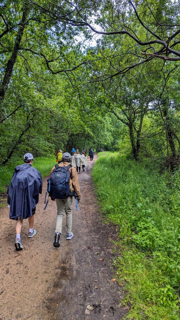 Je pars à 8 heures après avoir pris un petit-déjeuner au snack bar d’en face. A 8h30, il pleut déjà et il faut s’arrêter pour mettre le poncho.