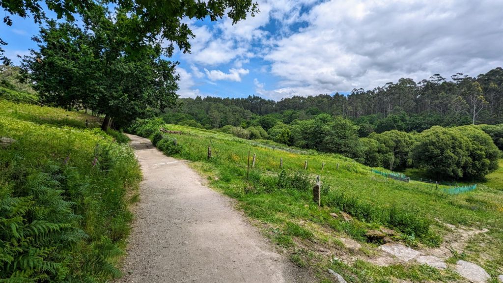 L’étape du jour est décrite comme une randonnée de moyenne montagne. Elle est courte, mais ça va grimper car on passe un petit col. Une chose est sûre par contre, aujourd’hui comme hier, le Camino nous emmène par des chemins magnifiques. Je ne sais pas combien de temps ni jusqu’où ça va rester comme ça, mais j’en apprécie chaque minute.