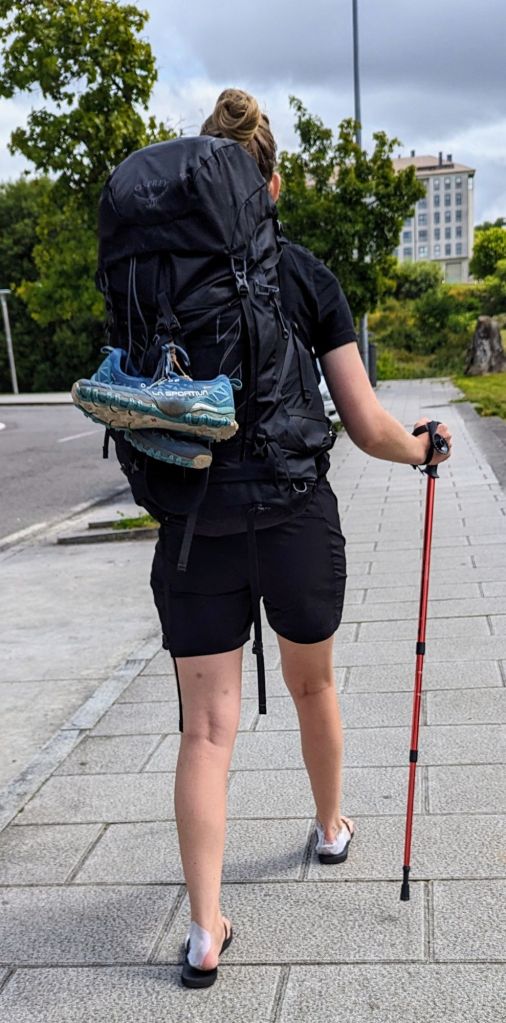 Je me suis levé à 6h10, c’est une première pour moi. Mais aujourd’hui c’est le dernier jour, il y a 6 heures de marche et beaucoup de choses à faire à Compostelle. Je suis très motivé à partir mais toujours aussi inefficace, alors je ne pars que vers 7 heures.