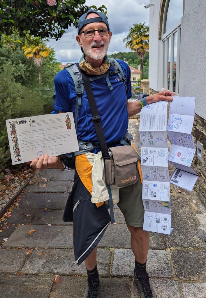 Plus loin je tombe sur Serge, militaire Français à la retraite qui a fêté ses 70 ans hier, et nous marchons un bon moment ensemble. Mais là il a vraiment de la peine, alors je le laisse car j’ai beaucoup de kilomètres devant moi et il va probablement s’arrêter au prochain village. Il prend son médicament, il est quand même handicapé et c’est remarquable ce qu’il marche.