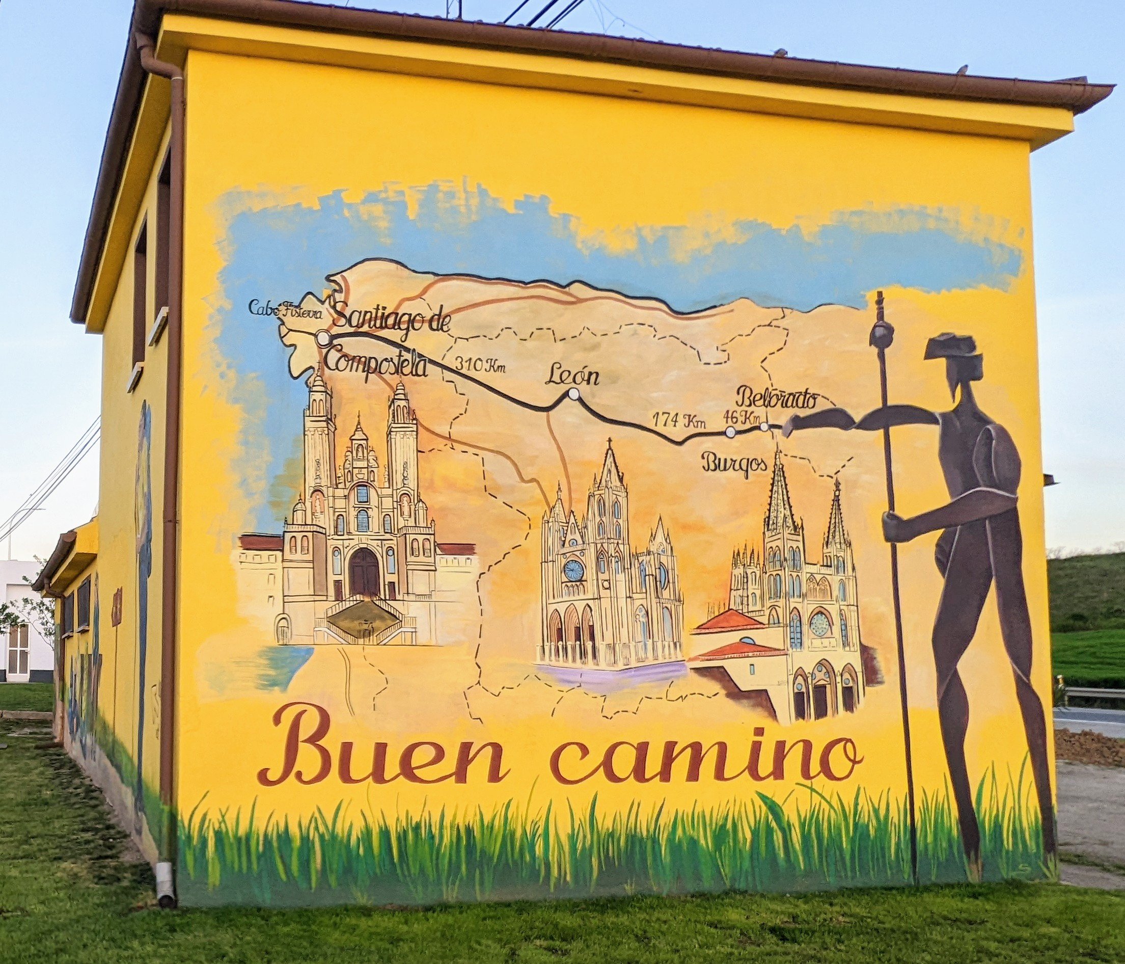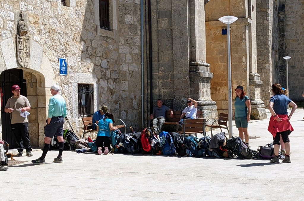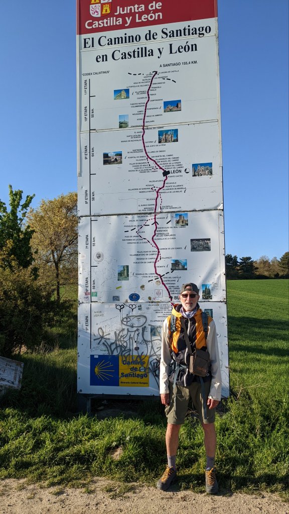 Hier soir j’ai mangé avec mes compères italiens et chacun a son programme particulier pour aujourd’hui. Renato, qui a fini par nous rejoindre mais qui souffre toujours des pieds, va prendre le train pour Leon. C’est vrai que l’arrivée à Leon est décrite comme particulièrement moche, une zone industrielle de plusieurs kilomètres. Ludovico va aussi à Leon et il veut marcher 27km et prendre un taxi pour les 10 derniers. Moi je m’en tiens à l’étape intermédiaire, soit environs 19km. Je vais ménager mon talon et ma hanche. Il y a pas mal de pèlerins qui prennent des raccourcis, sautent des étapes, prennent trains, bus ou taxi semble t-il.