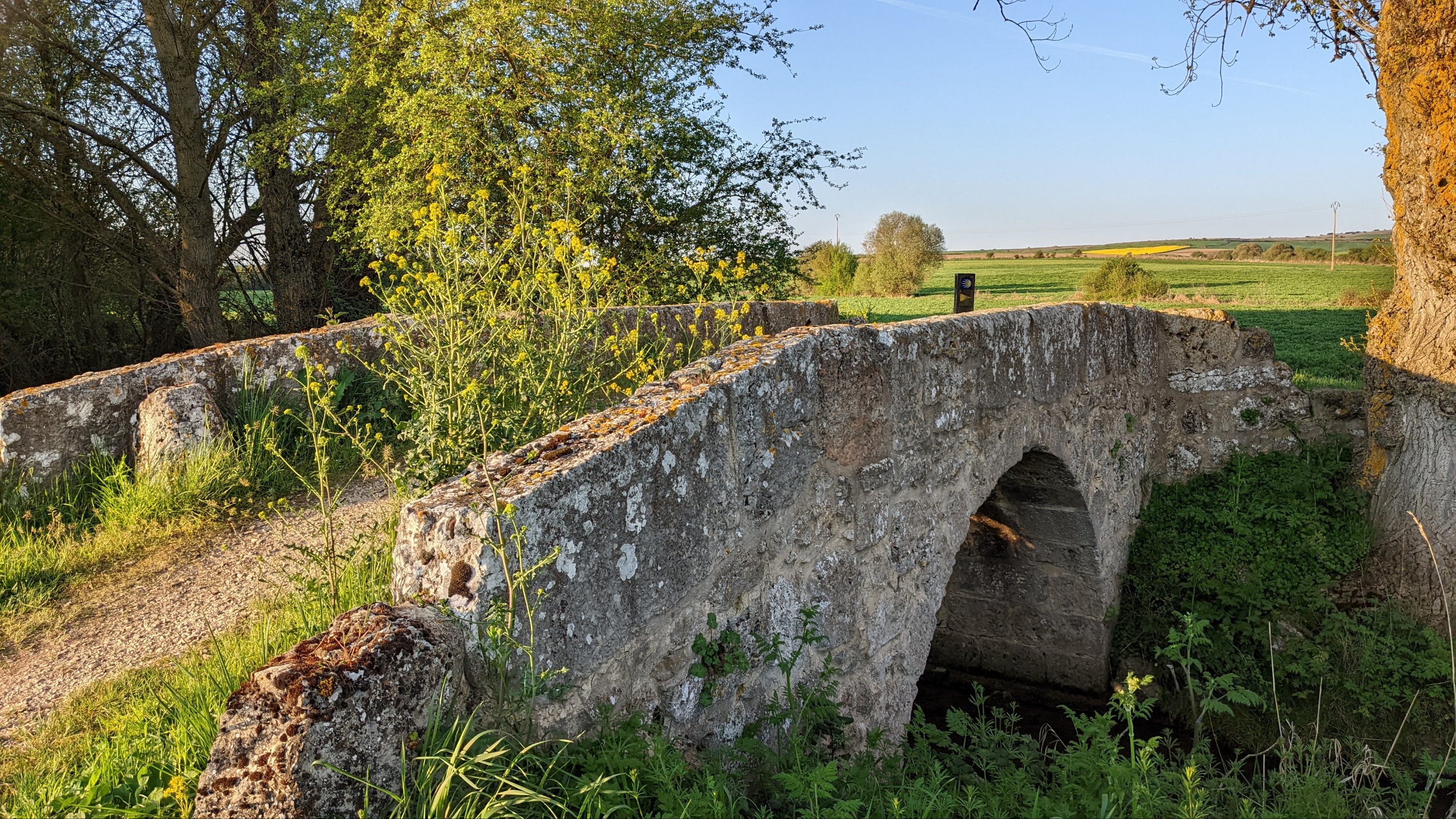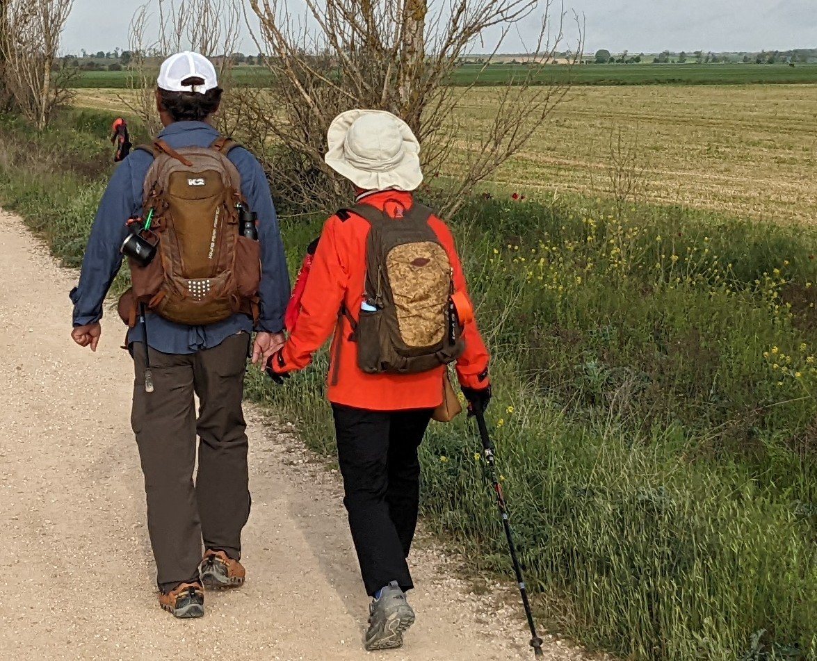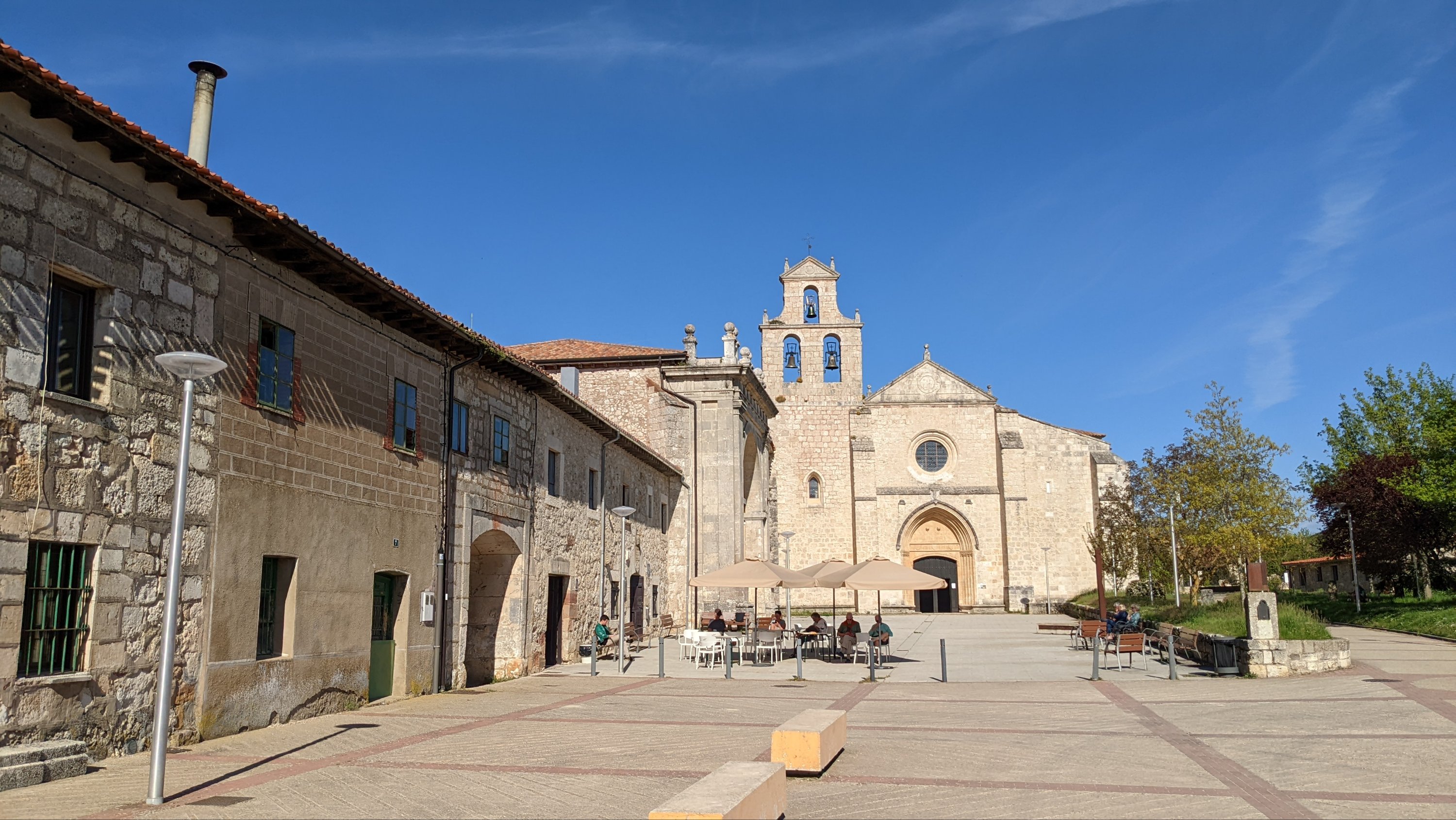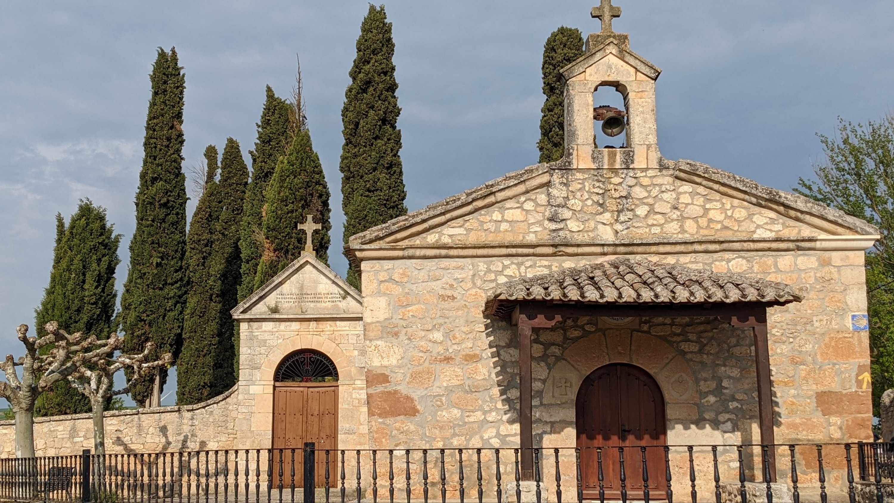 J’ai loupé le bar à l’entrée de Castrojeriz et il me faudra marcher près de 17km pour trouver un donativo tenu par un jeune couple qui vend quelques fruits, des biscuits et sert du café. Là je rencontre Sophia (nom d’emprunt mais pas pour des motifs de privacité, pour cause d’Alzheimer: j’ai oublié son nom 20 minutes après l’avoir quittée), une Slovène avec qui je fais un bout de chemin. Dans la discussion elle a mis en mots ce que je ressens: sur le Camino je suis heureux. Ça semble débile mais je ressens de la joie, je suis en paix, je me sens très privilégié de vivre ce pèlerinage hors du temps et dans un paysage d’une richesse, d’une histoire et d’une beauté exceptionnelles.