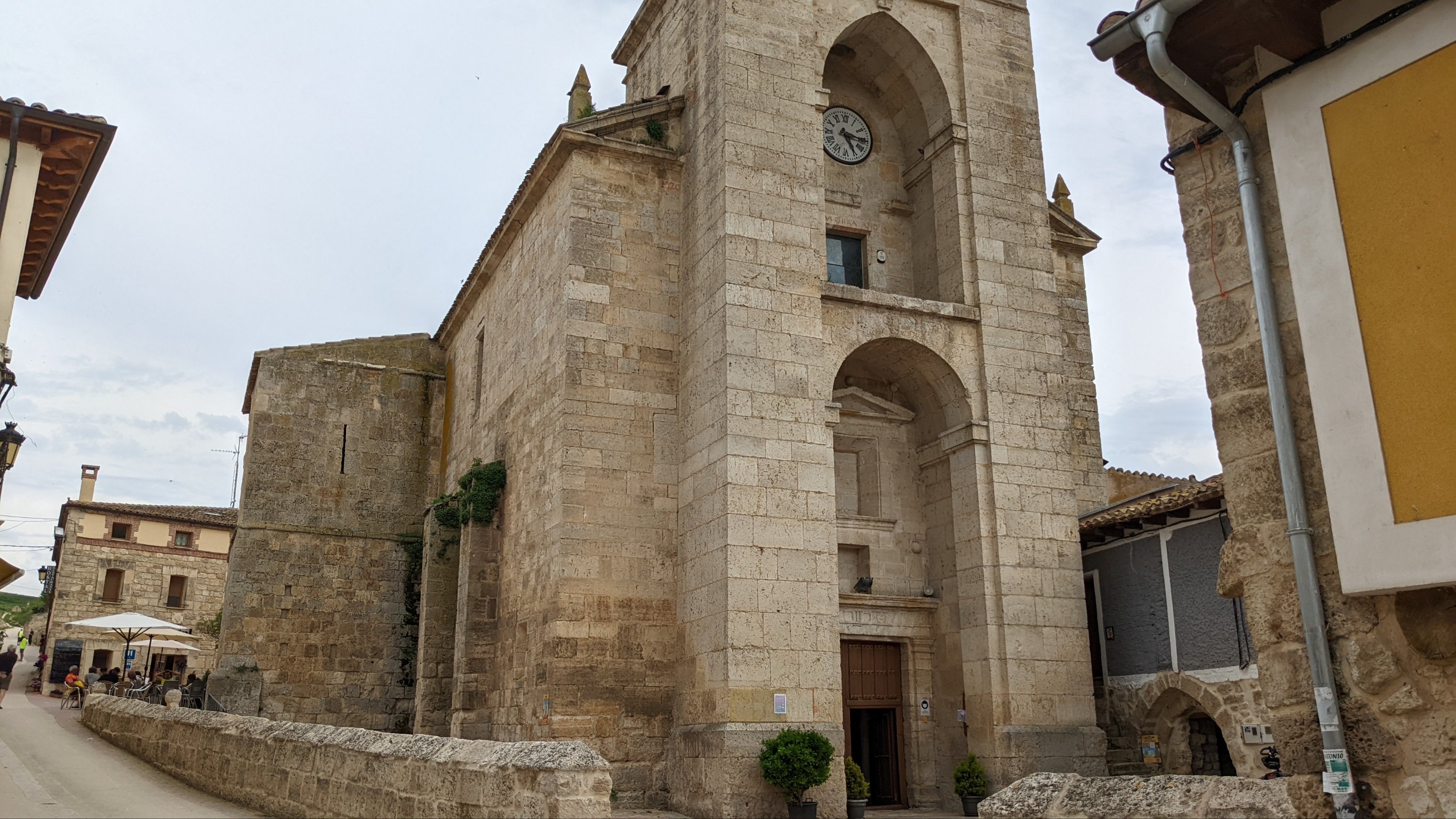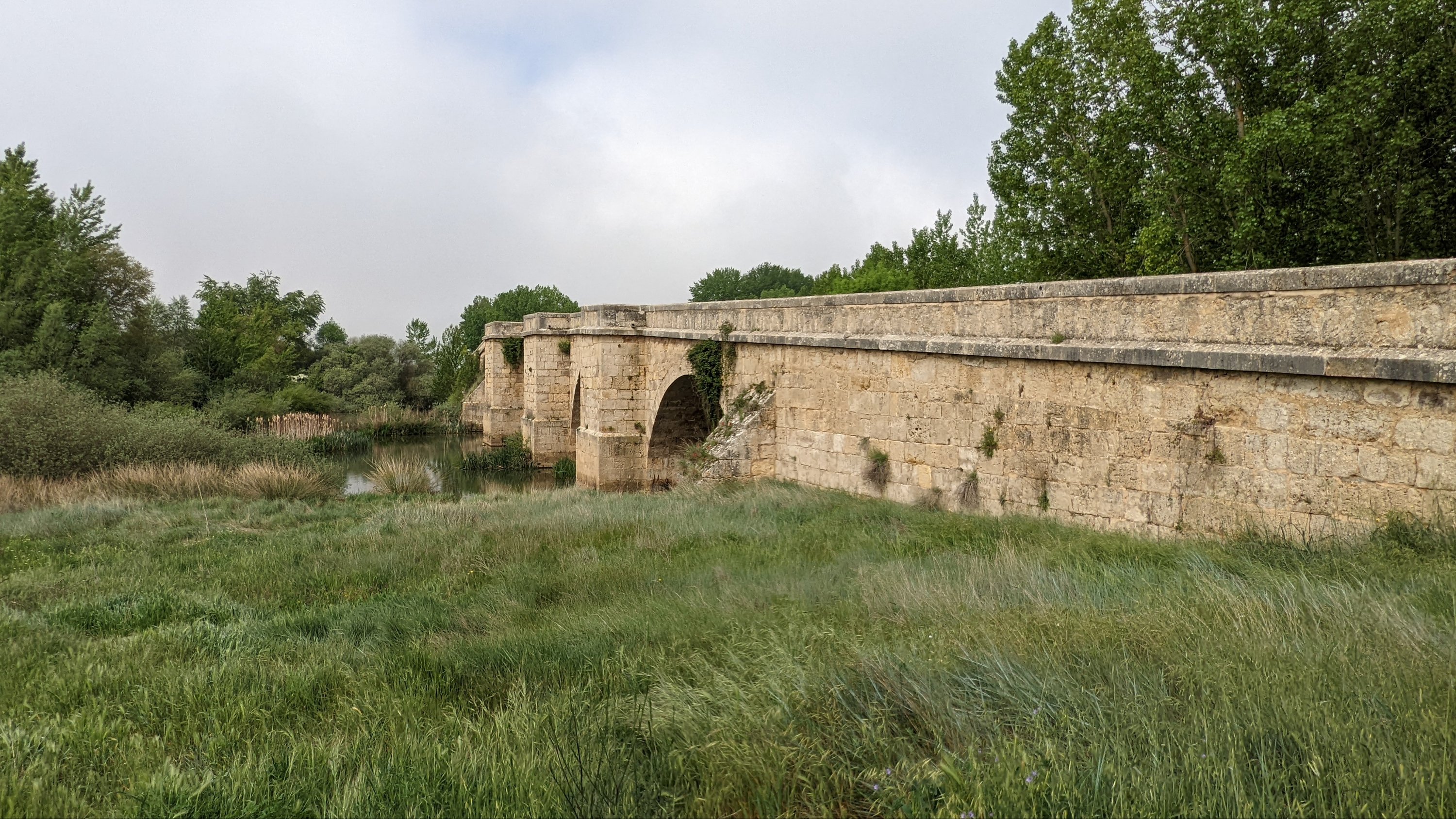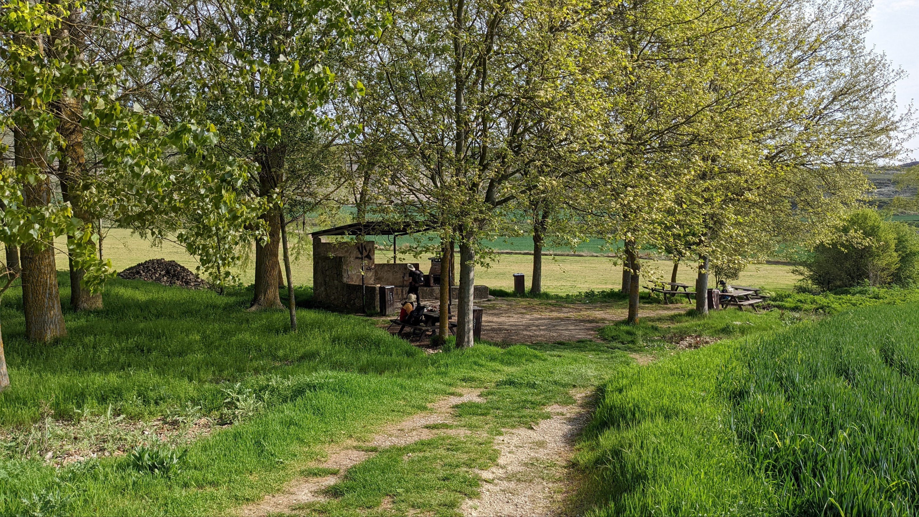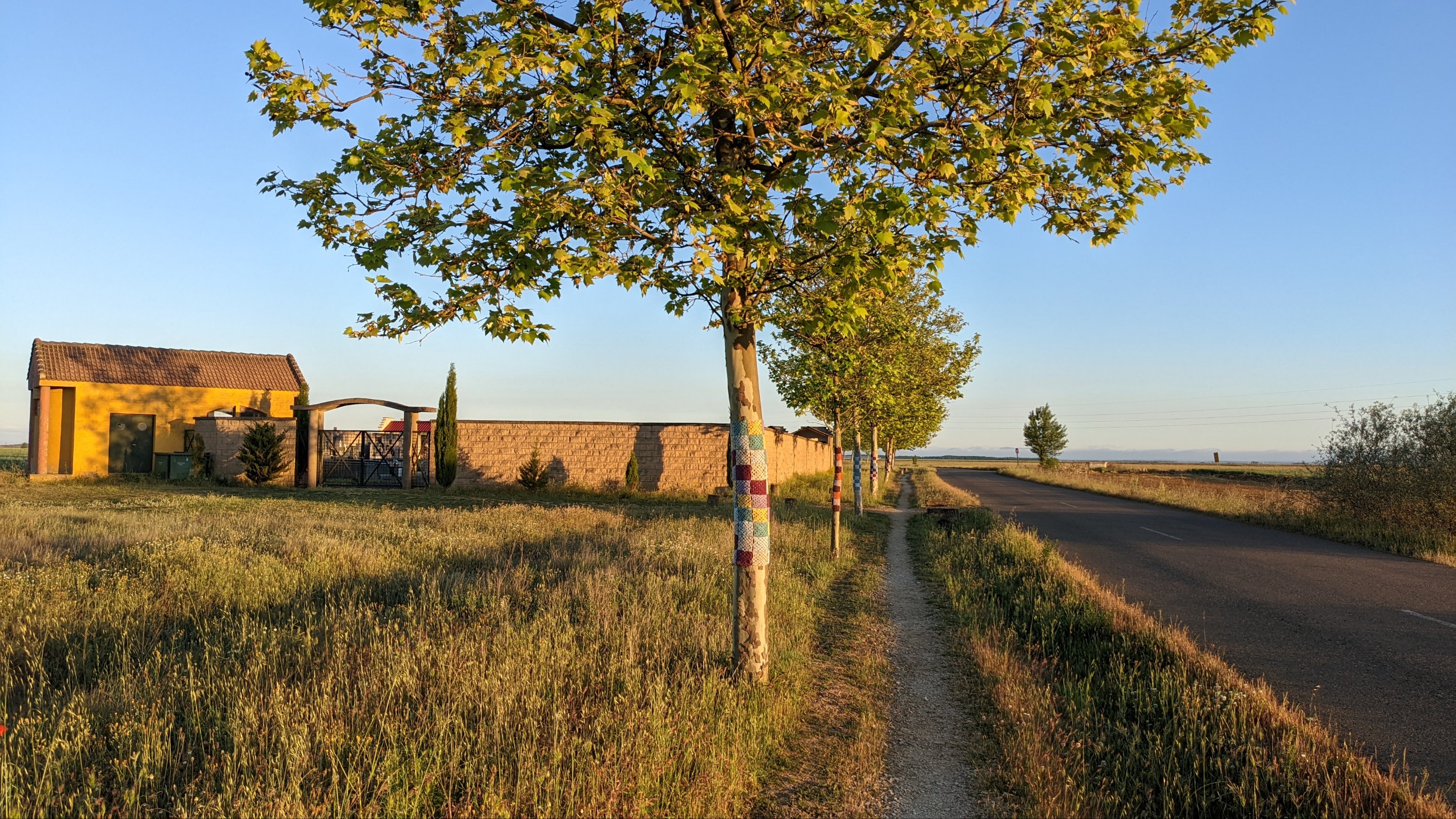 J’ai loupé le bar à l’entrée de Castrojeriz et il me faudra marcher près de 17km pour trouver un donativo tenu par un jeune couple qui vend quelques fruits, des biscuits et sert du café. Là je rencontre Sophia (nom d’emprunt mais pas pour des motifs de privacité, pour cause d’Alzheimer: j’ai oublié son nom 20 minutes après l’avoir quittée), une Slovène avec qui je fais un bout de chemin. Dans la discussion elle a mis en mots ce que je ressens: sur le Camino je suis heureux. Ça semble débile mais je ressens de la joie, je suis en paix, je me sens très privilégié de vivre ce pèlerinage hors du temps et dans un paysage d’une richesse, d’une histoire et d’une beauté exceptionnelles.
