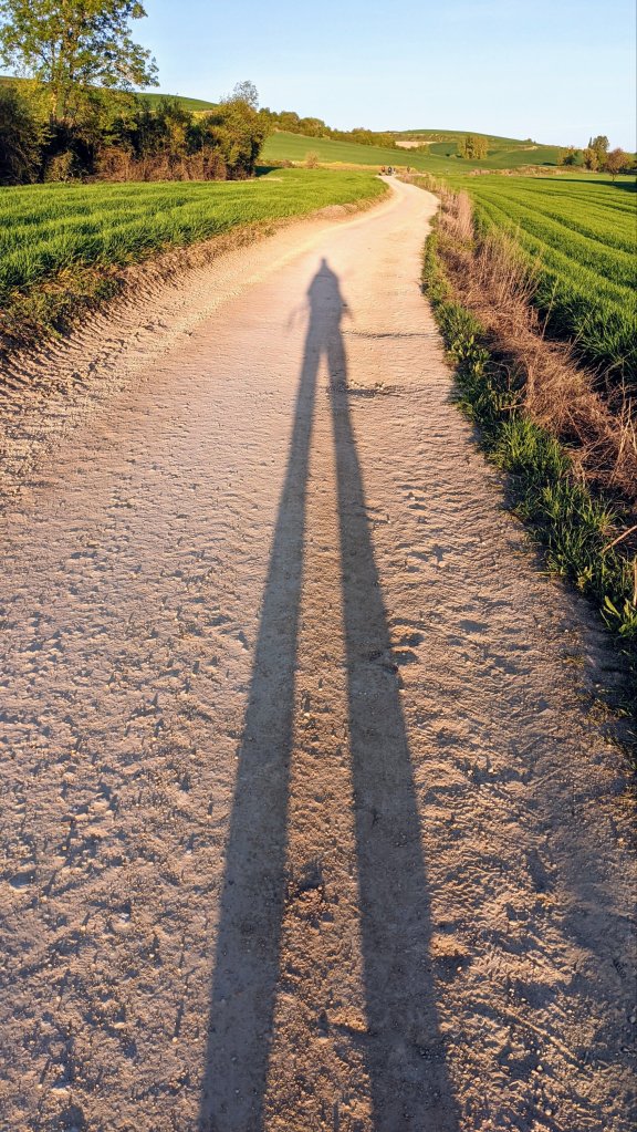 Je prends conscience que depuis le début de la marche j’ai le soleil dans le dos. D’ailleurs ça m’oblige à porter ma casquette à l’envers.