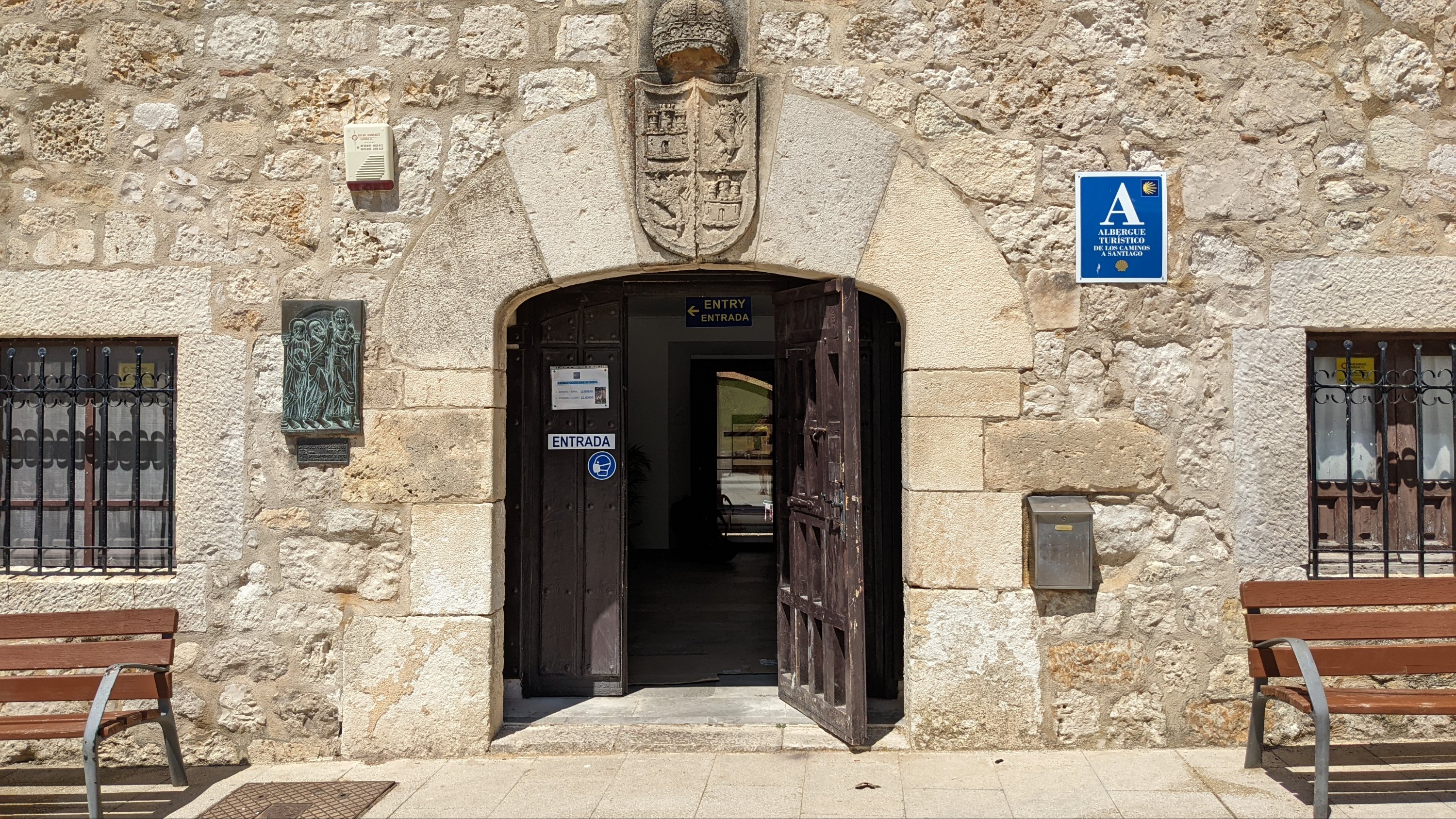 A 12h45 arrivée à l’auberge municipale, 150 lits réduits de moitié pour cause COVID. Beaucoup de gens avec les masques en Espagne. J’ai toujours la foi, n’avais pas réservé et trouvé une place. Par contre ils n’ont pas de couverture !!!