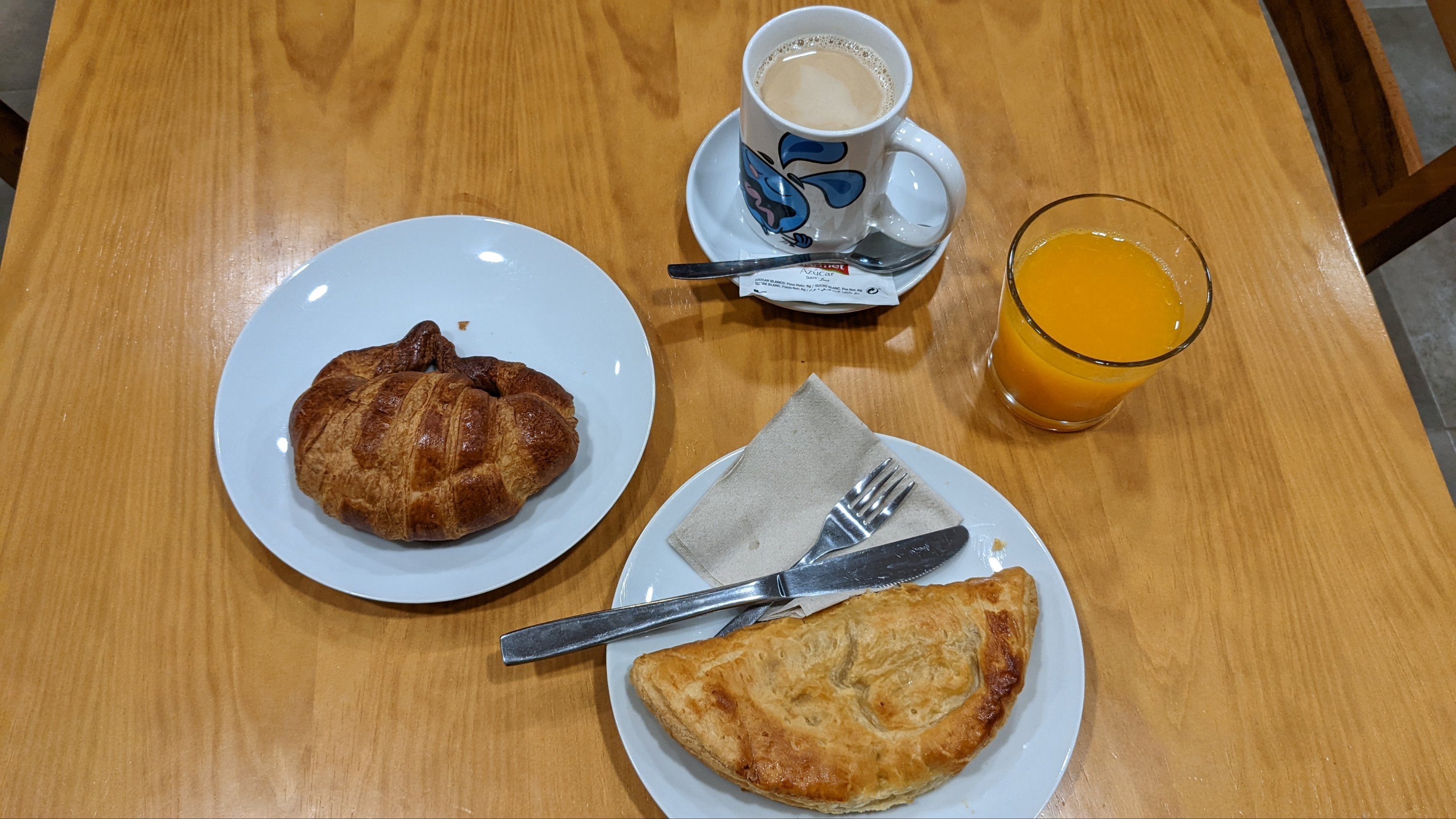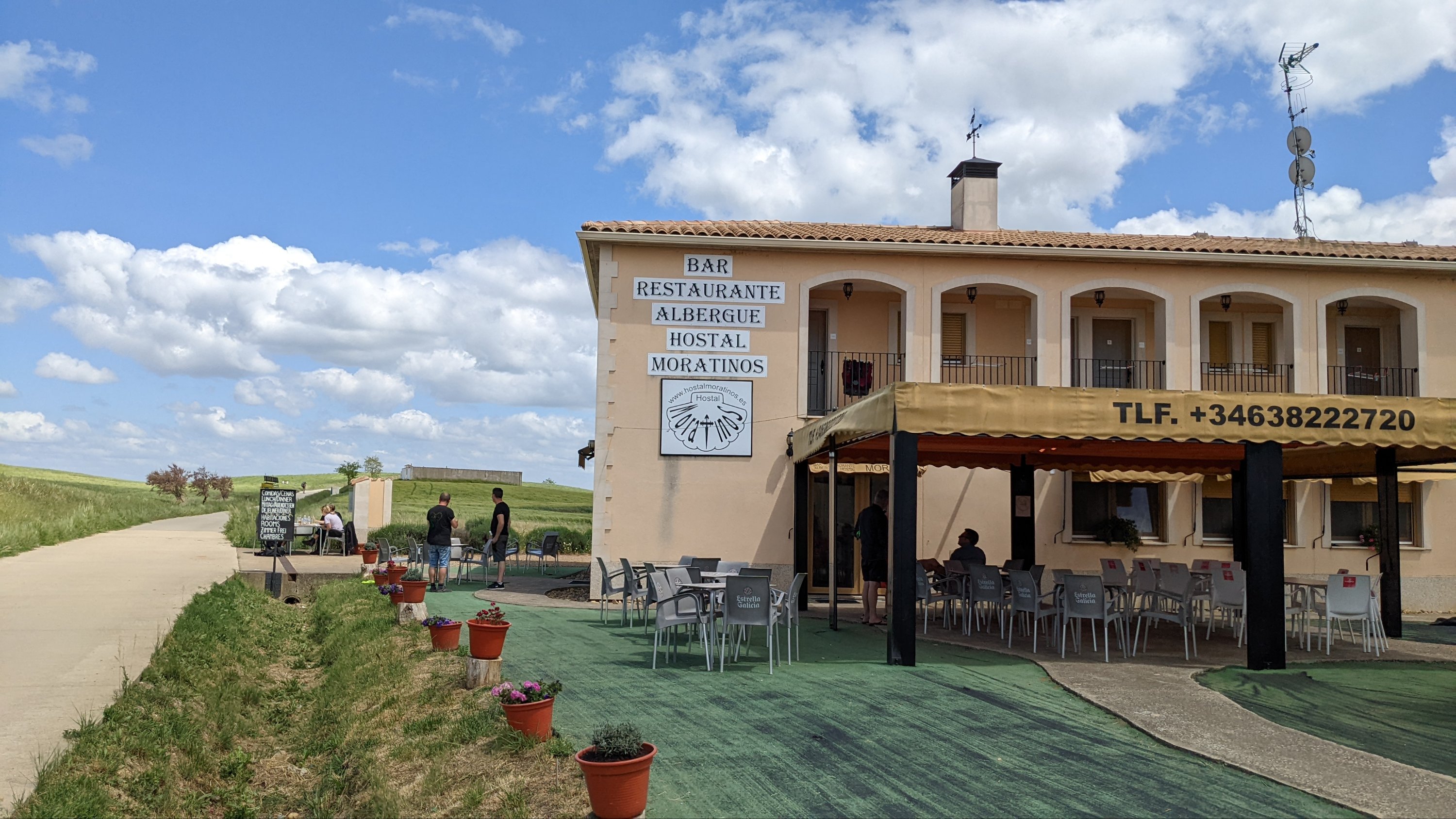 Ce matin levé comme d’habitude à 6h mais je prends tout mon temps car le restaurant d’en face n’ouvre qu’à 7h. Je ne veux pas partir l’estomac vide et le prochain village est à presque 13km, alors j’attends un peu. Finalement je partirai à 7h15 après un café et un croissant.