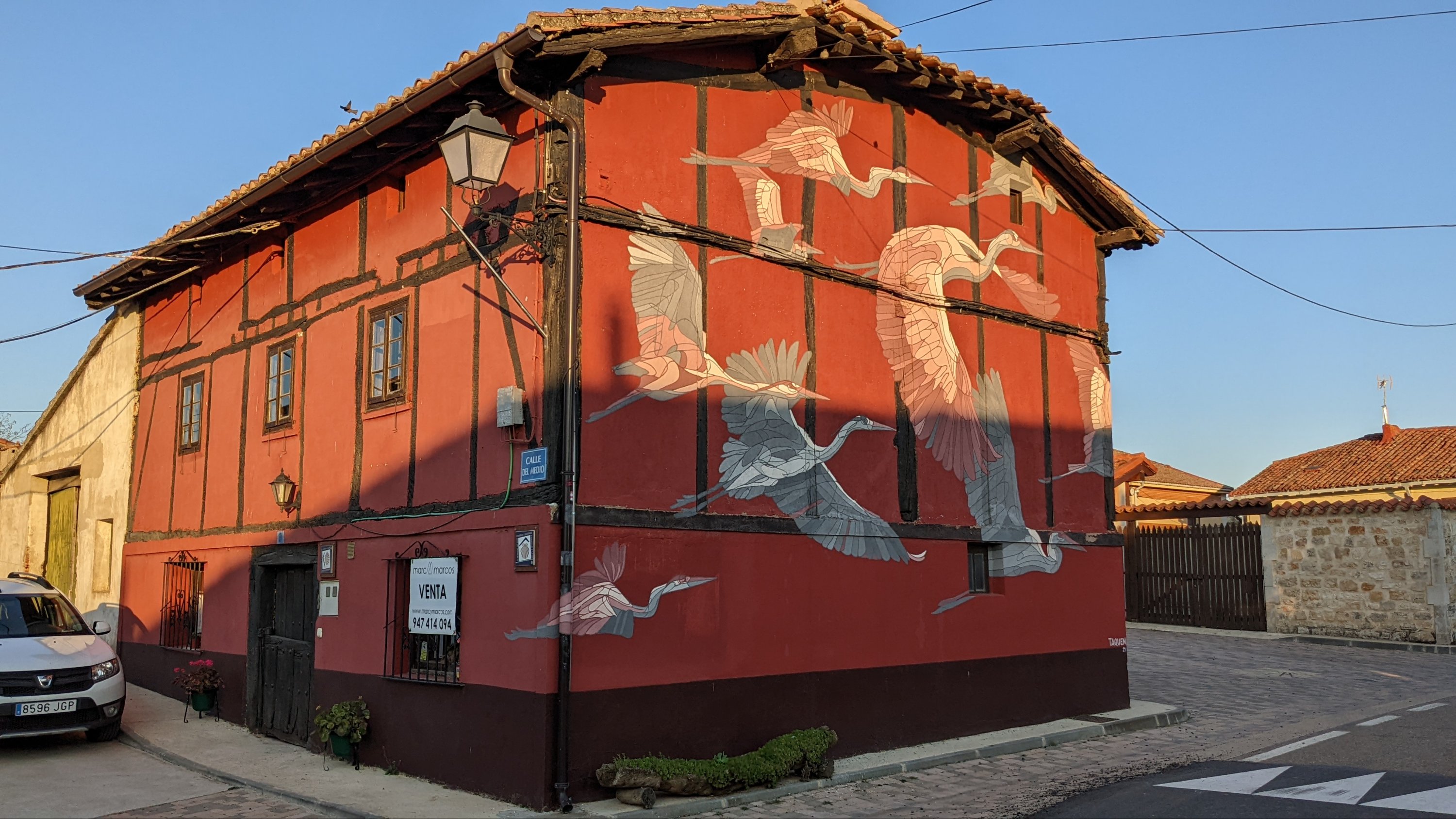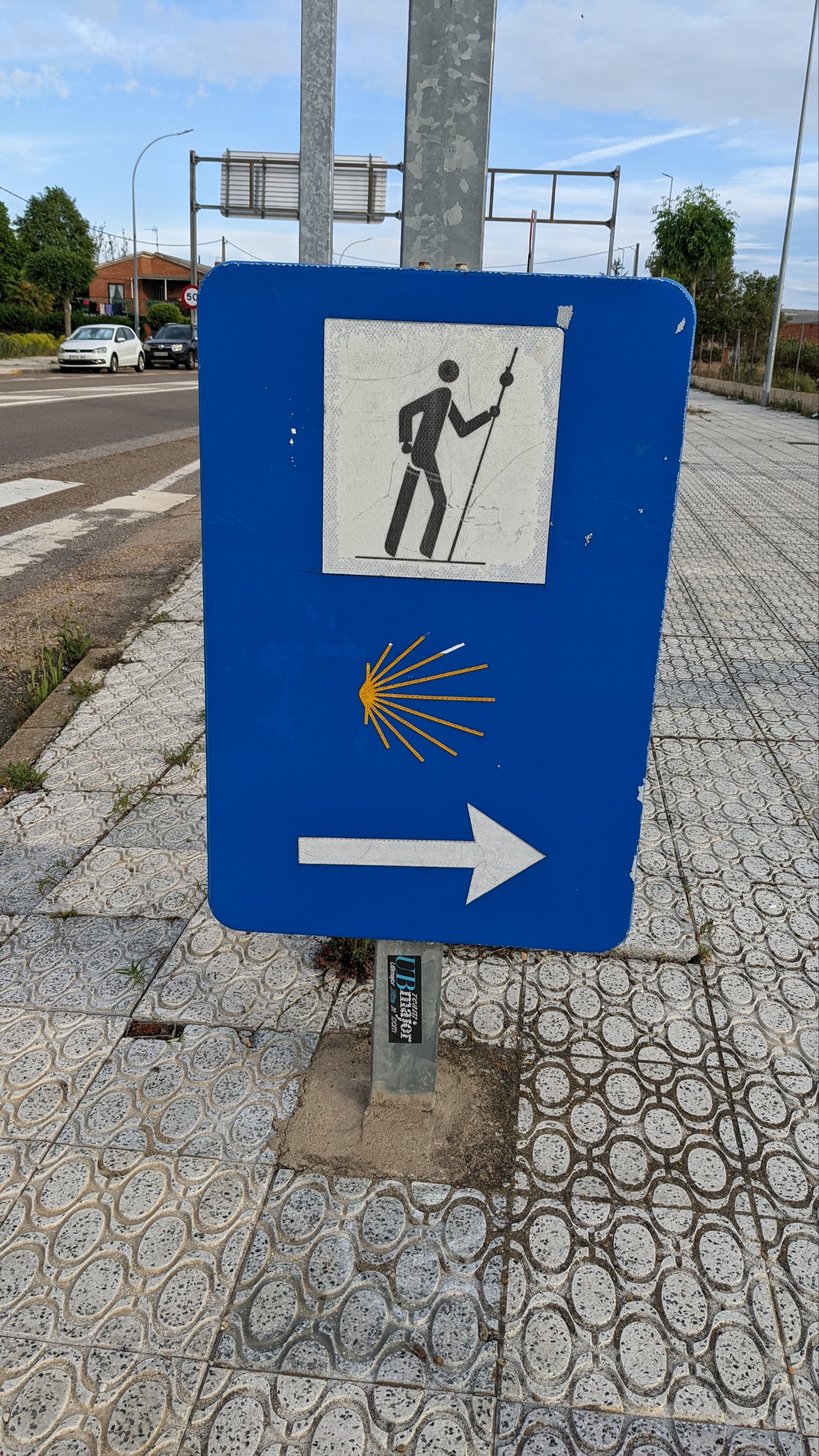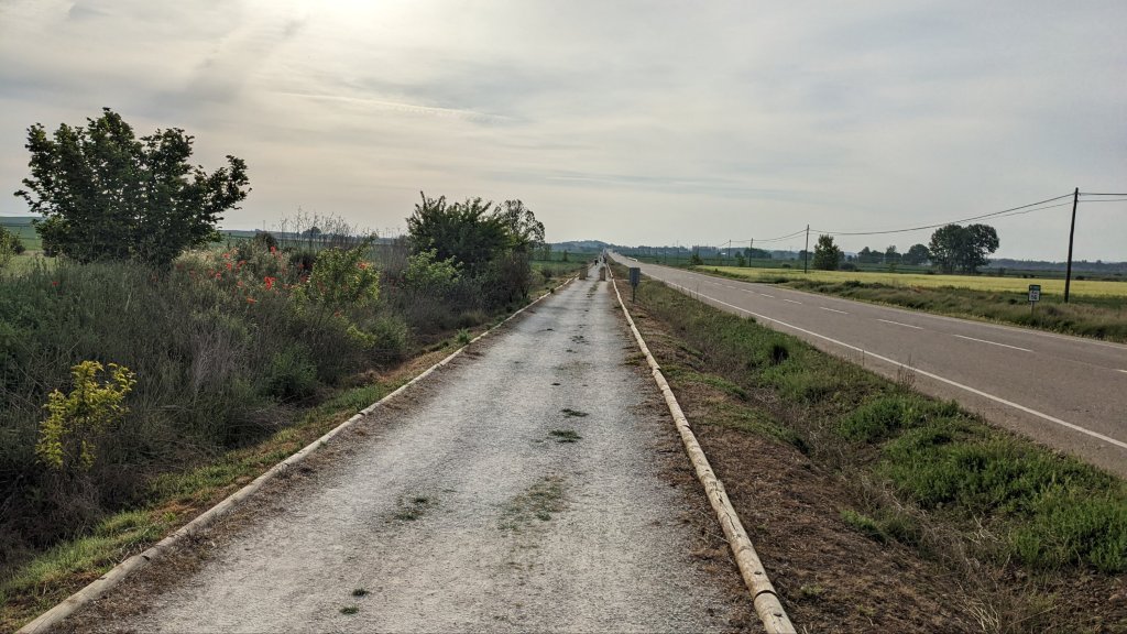 La douleur au talon m’a réveillé plusieurs fois et j’avoue que ça m’inquiète un peu avec ce manque de sensibilité autour. Grâce à Dieu je peux quand même marcher ! Après 8km environs, je croise ce gentil couple Belge que je vois depuis le début. Ils marchent à contresens, ils s’étaient arrêtés en chemin et avaient oublié quelque chose. Finalement ça leur coûtera 6km supplémentaires qui s’ajoutent au 37km pour aller jusqu’à Leon. Ils sont bien braves, ou complètement à la masse, car 43km représentent quand même 9 à 10h de marche.