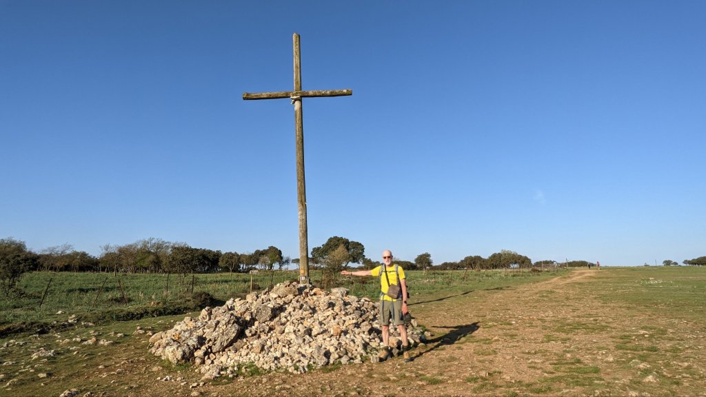 A moins de 5km du départ je tombe sur mon compagnon pèlerin Renato, assis au bord du chemin. Il a beaucoup de peine aujourd’hui, c’est très dur pour lui et l’étape est encore longue. C’est vrai qu’au 16è jour le corps s’est habitué à ce nouveau régime. Mais ça reste une épreuve, physique et mentale, d’affronter l’étape chaque jour. Renato repartira, à son rythme, car il a de la volonté.