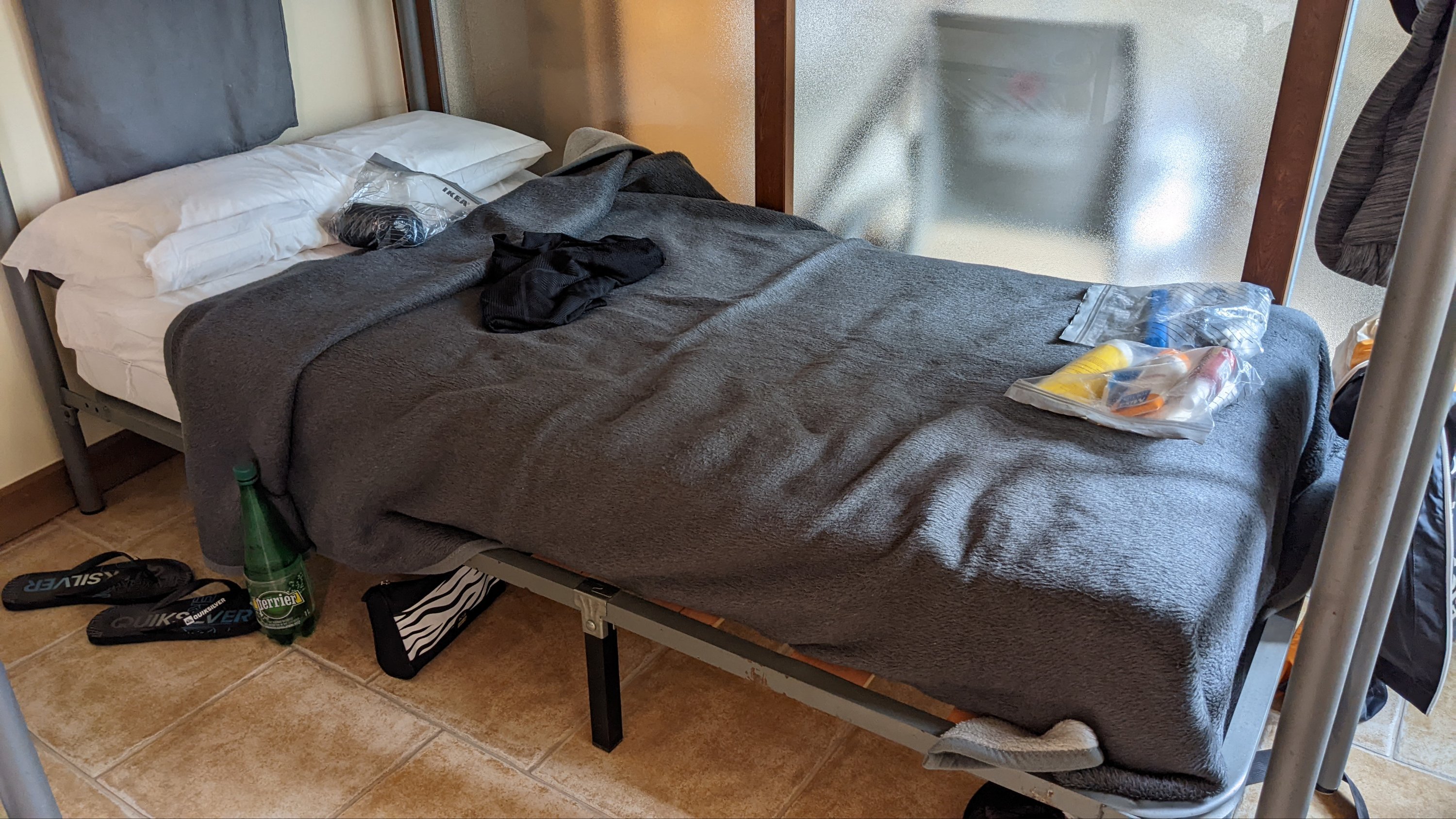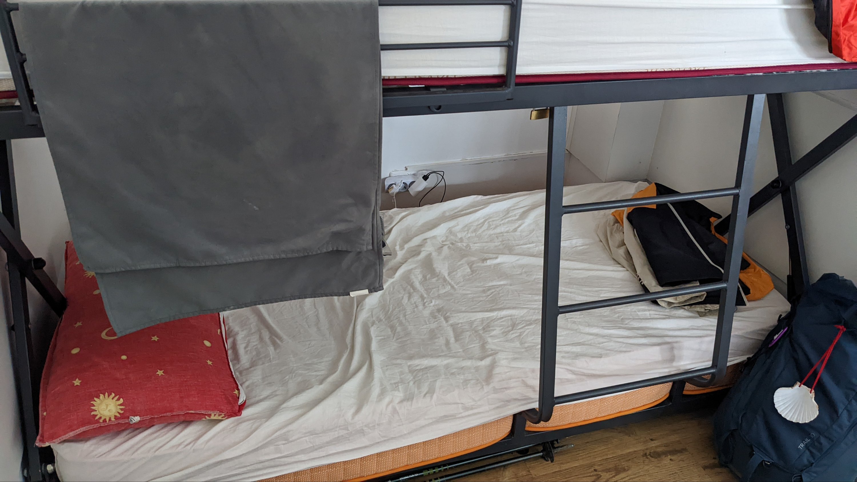 Je reconnais qu’il y a quelques avantages à la chambre individuelle: personne ne ronfle la nuit, personne ne te réveille à 5h du matin. J’ai bien dormi en fait et même pu faire mes exercices pour le dos pour la première fois depuis mon départ. Cela dit, j’espère sincèrement toujours trouver un lit à l’auberge communale.