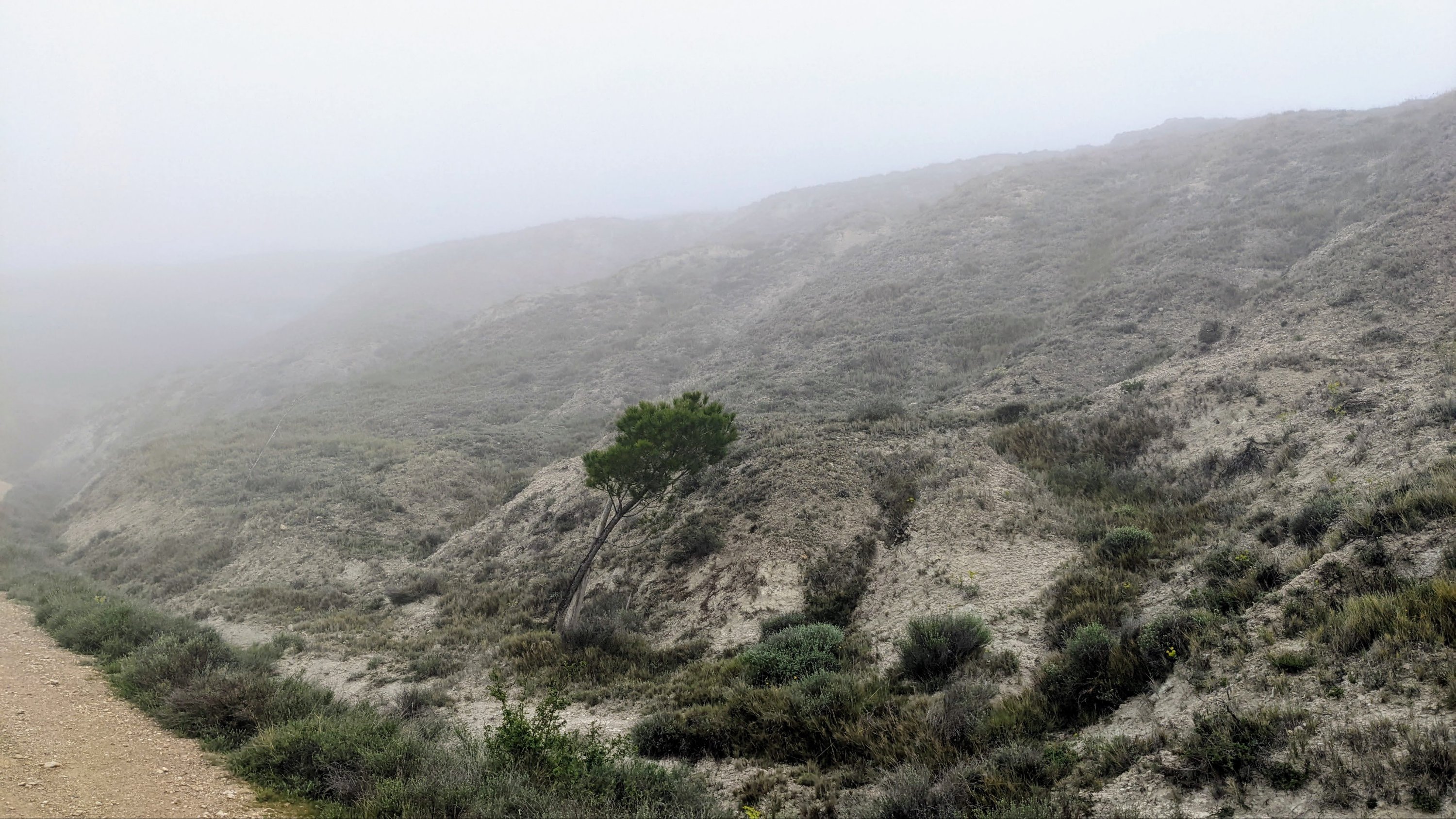 Le soleil s’est levé sur un ciel radieux mais le temps se couvre dans la matinée et, pour la première fois en 18 jours, je mets la protection pluie du sac à dos. Il ne pleuvra pas mais le temps restera instable toute l’après-midi.