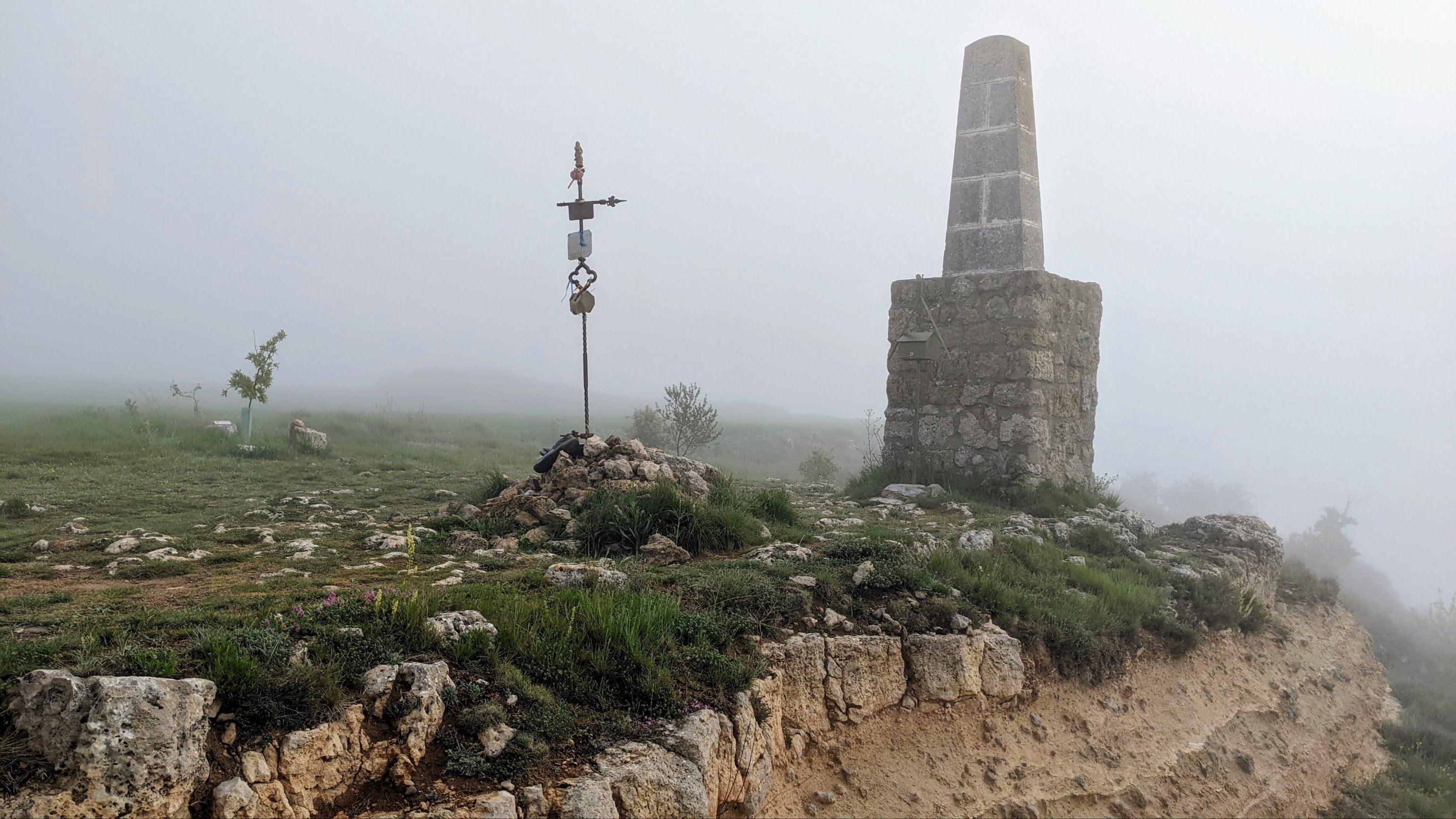 Beaucoup de pierres que les pèlerins posent sur les monuments.