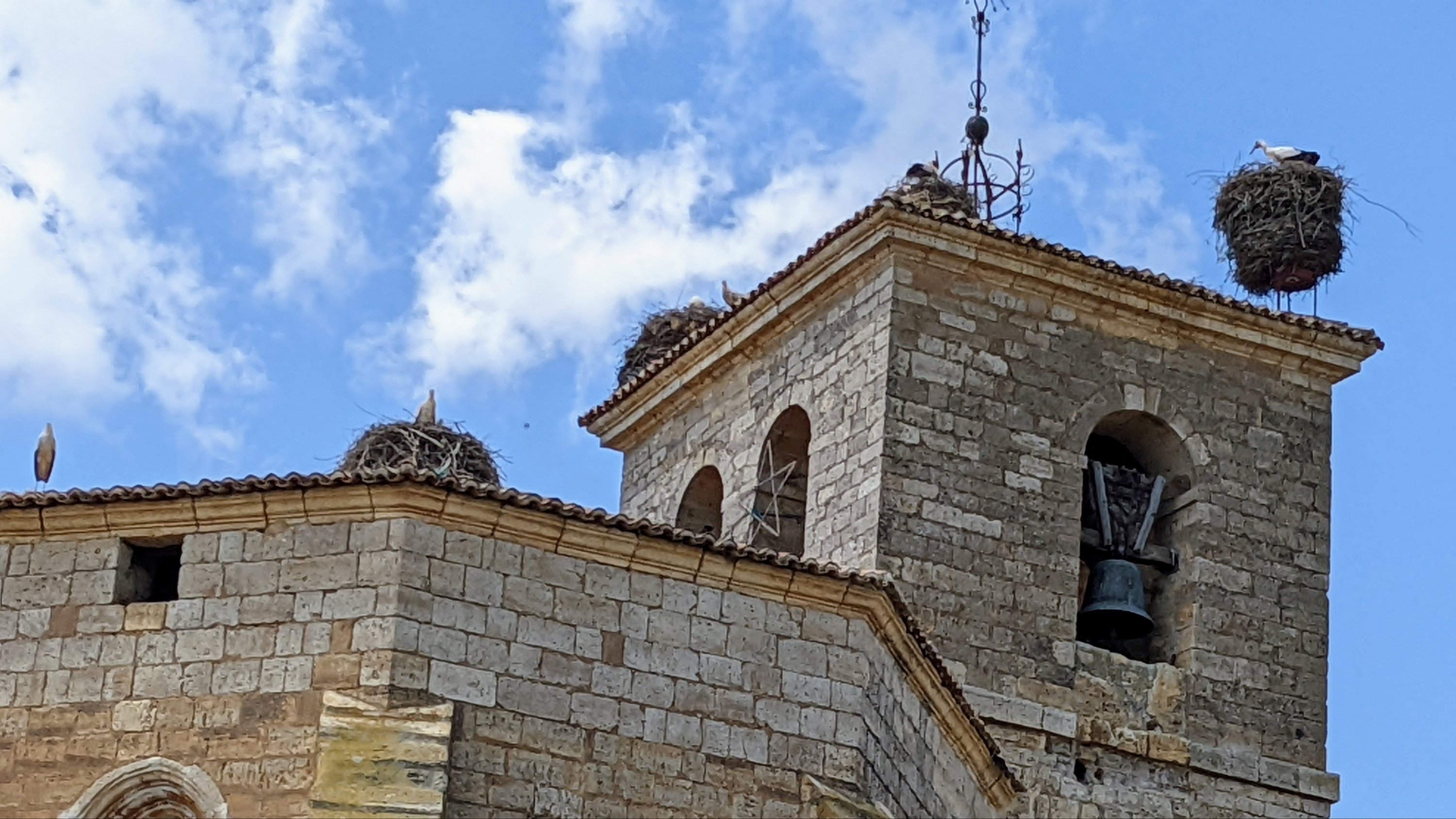 Les cigognes squattent l’église, j’en ai compté huit !
