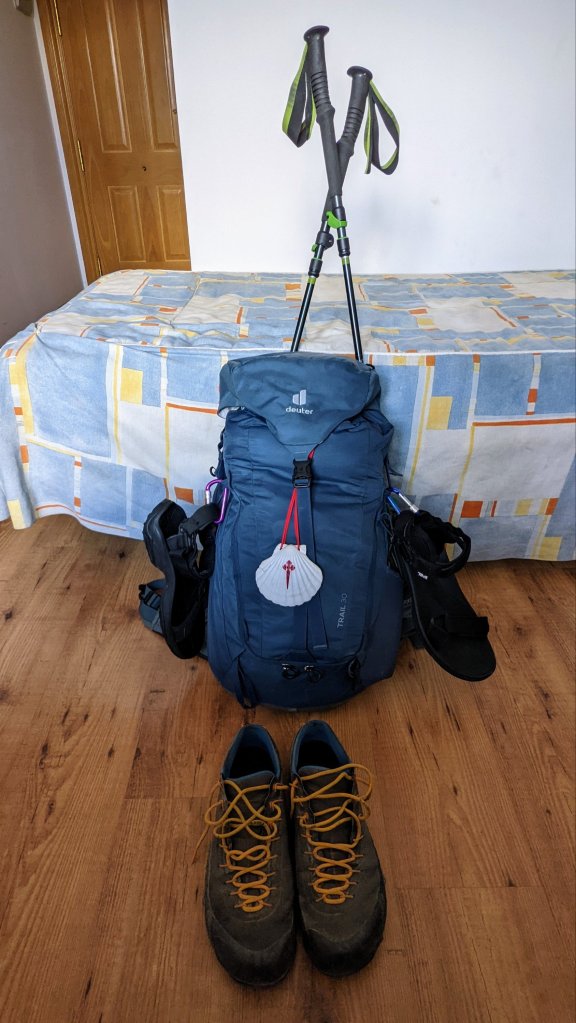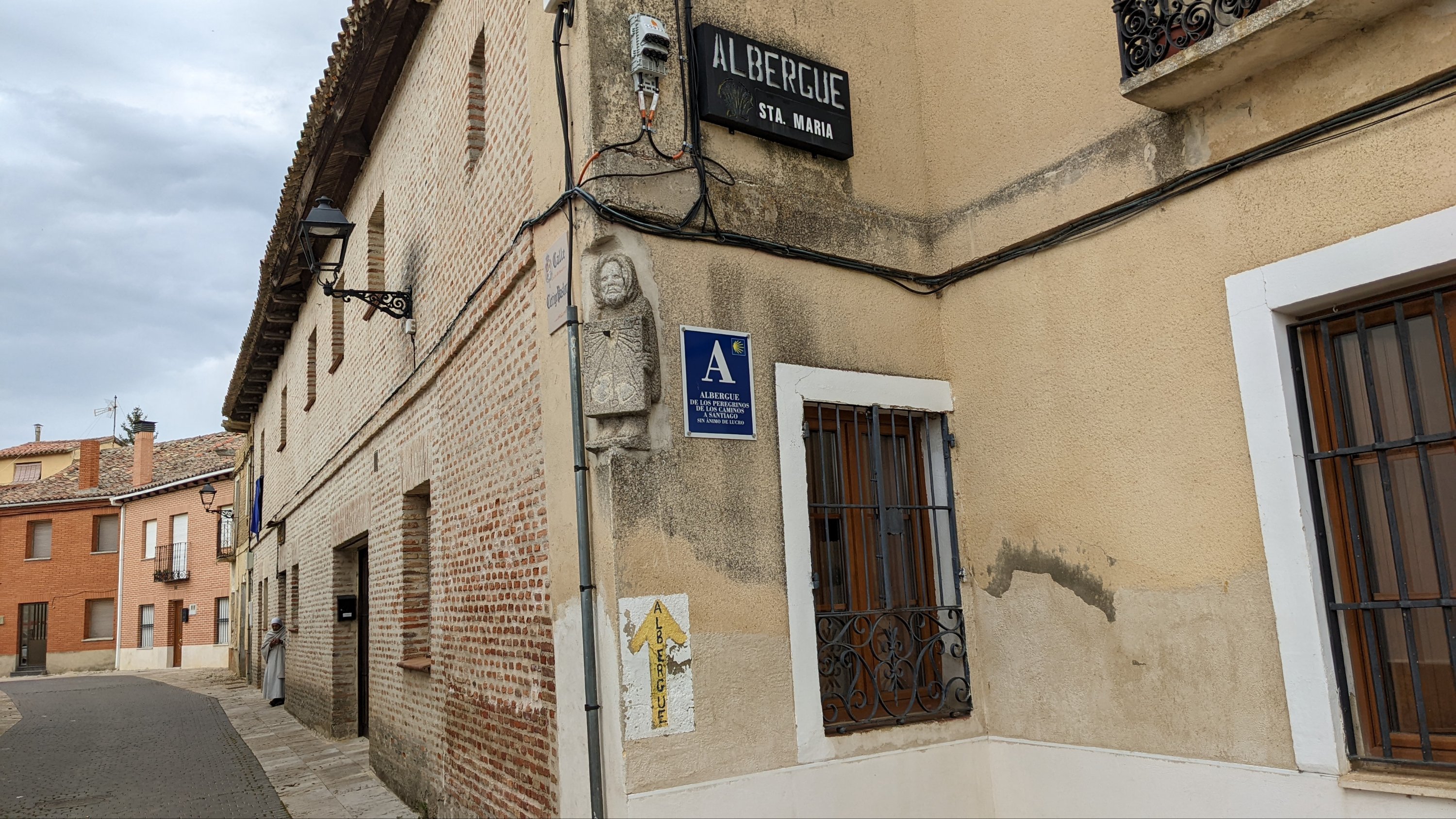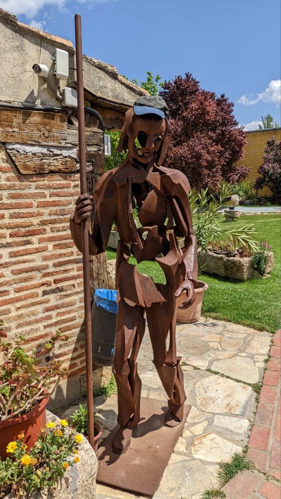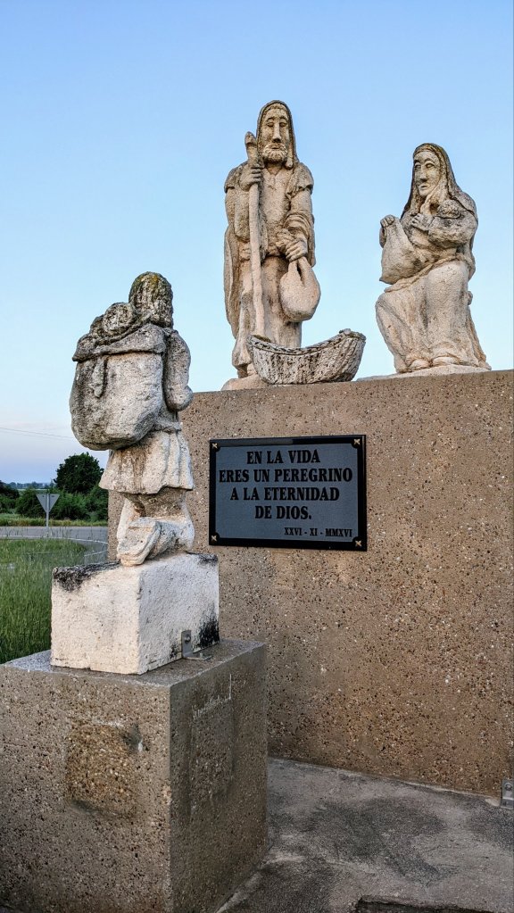 Aujourd’hui et après 28km de marche, pas de place à l’étape prévue albergue complet ! Le village suivant est à 3km et là je trouve un lit: Saint Jacques a pourvu, faut garder la foi.