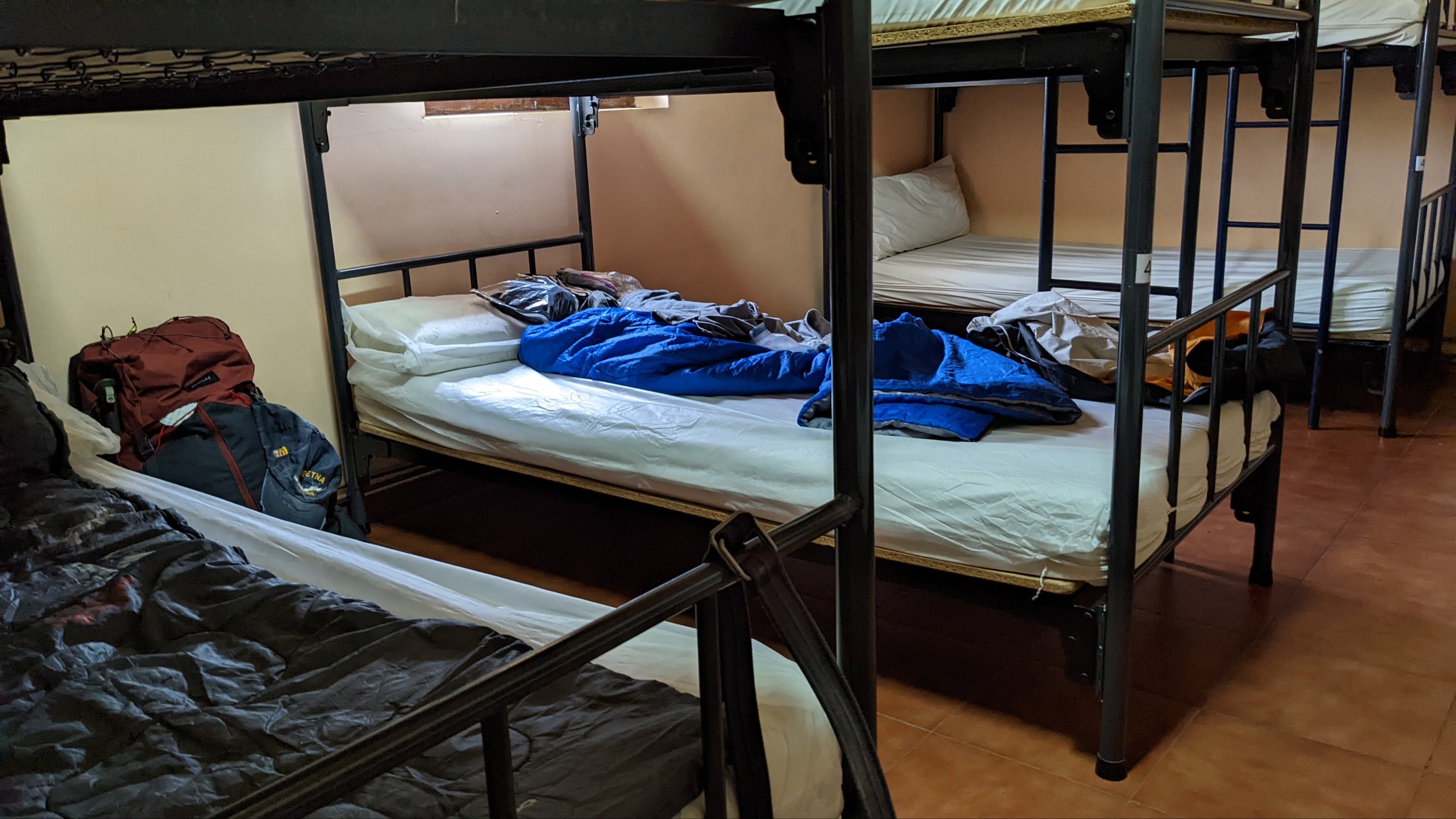 Mauvaise nuit car je n’avais pas de couverture et le froid m’a réveillé plusieurs fois. Heureusement mon compagnon pèlerin m’avait donné un maillot thermique longues manches, au moins le haut du corps était au chaud. Juste un sac à viande pour se couvrir à ces altitudes, ce n’est pas suffisant !