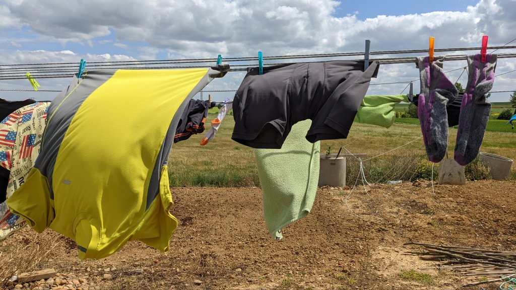Lavés à la main au savon de Marseille… routine journalière du pèlerin, laver son linge sale.