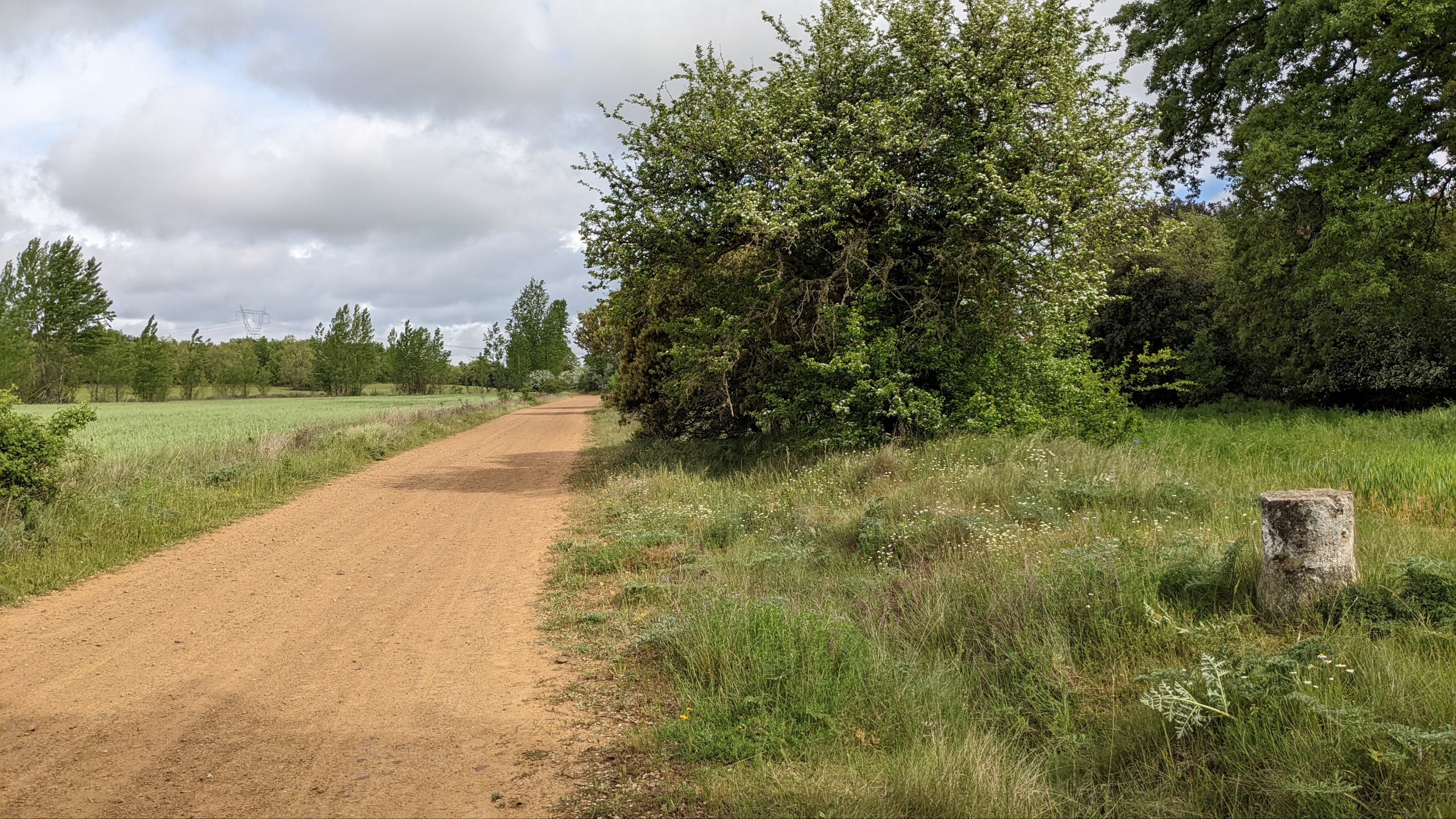 Au sortir de Burgos j’entre dans la meseta, un haut plateau entre 900 et 1000m d’altitude. Le temps est resté menaçant mais il n’a pas plu. Par contre il y a ces moucherons qui te tournent constamment autour de la tête, tu les avales quand tu ouvres la bouche… Énervant !