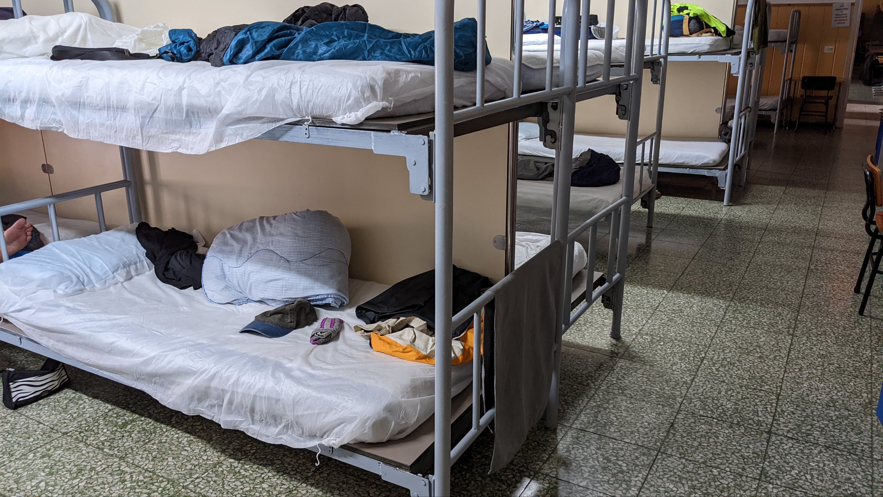 Je ne sais pas c’était une erreur ou un exercice, mais l’alarme a sonné vers 5h30 avec instructions d’évacuation immediate. L’auberge municipale a une capacité de 150 lits sur cinq étages, c’est du lourd. Quelques minutes plus tard un employé de l’accueil est venu dire que ce n’était rien. Entre-temps nous étions tous debout, alors je me suis dit autant partir, ce que j’ai fait à 6h40