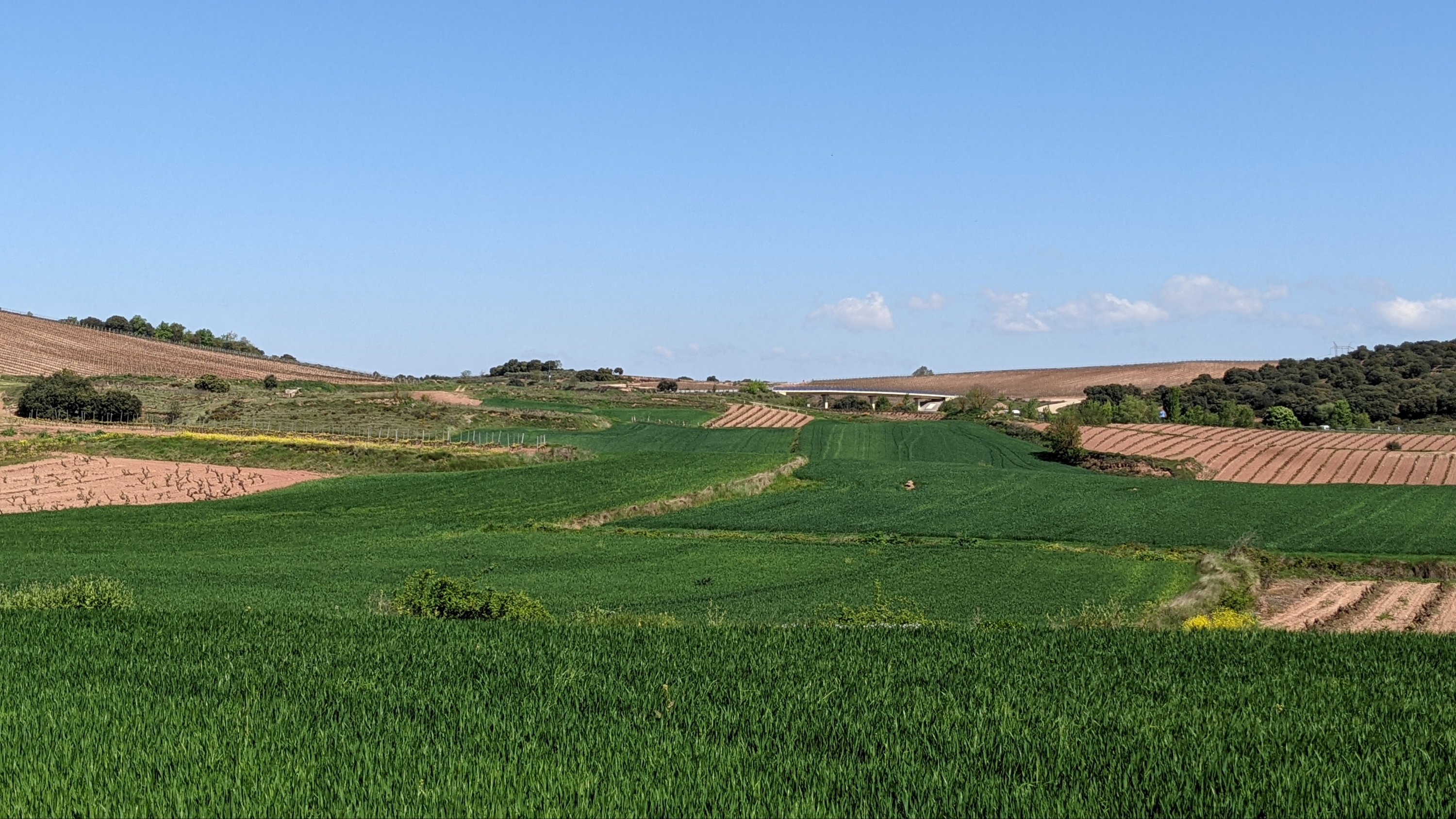 Je ne connaissais pas l’Espagne et ces régions sont magnifiques. En marchant je sens l’odeur du colza, j’entends le bruissement du blé, il y des ceps de vigne à perte de vue.