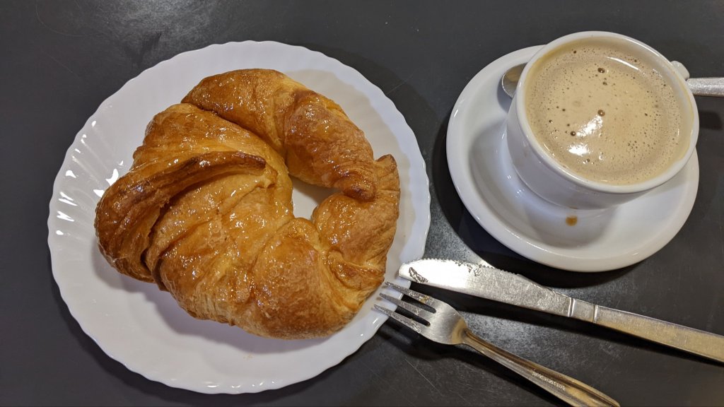Il me faudra marcher 5km pour finalement trouver un bar et prendre café con leiche et croissant. En Espagne je mange les meilleurs croissants !